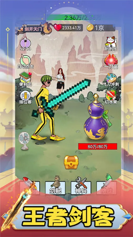 Super fun and magical decompression casual game! The player controls the attack of the game character by clicking on the screen. The faster the screen is clicked, the faster the character's attack speed will be. In the game, you can challenge various NPCs, such as: security guards, Jiuzhuanchangchang Wang, Brother Qiang, fruit gourd baby and other more stalking characters. Players need to constantly challenge various kendo masters in the game, constantly improve their swordsmanship, make themselves stronger, and become the best kendo master. There are also many magical and funny designs to bring players brand-new game fun .