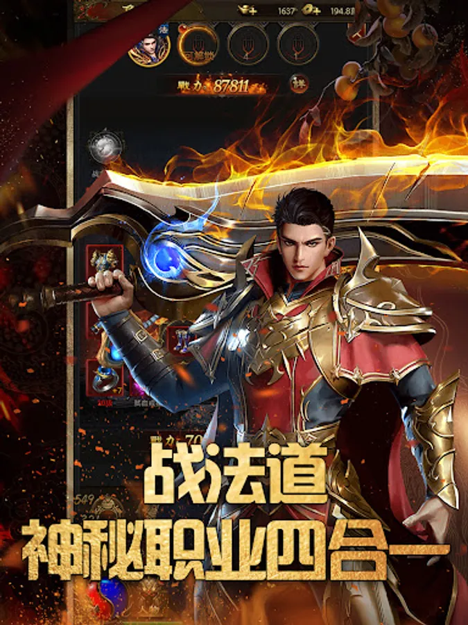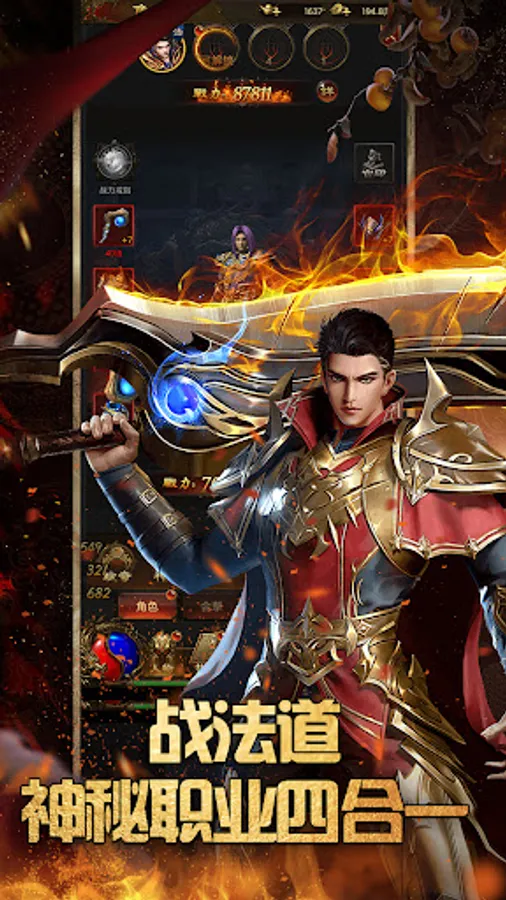 On the basis of the vertical version of the mobile game Warfare and Dao's three-professional combo gameplay, a fourth profession, Demon God, is added to form a 4-professional combo skill gameplay. After the player chooses the main profession, the second profession is opened at level 40, and the second profession is opened at level 80. The third profession, after completing the task, you can get the fourth profession - demon god, the demon god's skill comes with knife cutting, the combined attack of 4 professional skills will have higher damage and wider range than the three occupation skills, and after opening the demon god role, you can Increase the explosive rate of equipment.
