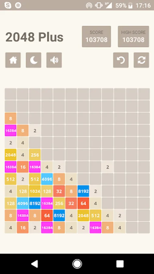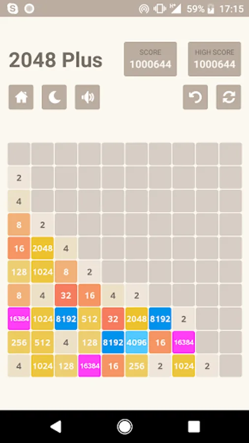 Swiping in four directions (left, right, up, down) on the game screen, two adjacent cells in the same swiping direction will be combined into one double point. Make the number in the tiled as large as possible. Your total score is the sum of the numbers you have combined.