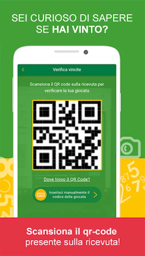 • Check your bets by framing the QR Code of the receipt in the 'Check Winnings' section: a quick and easy way to find out immediately if you have won.