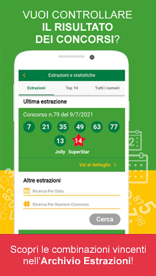 • Access the Extractions Archive directly from the home page to consult the results of all SuperEnalotto competitions at any time.