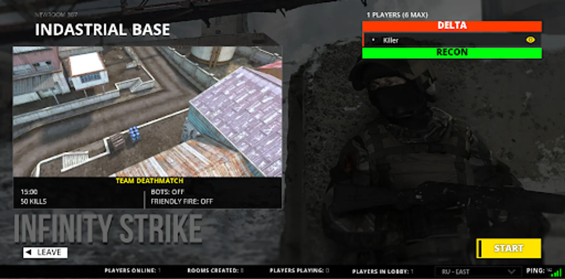 Infinity Strike - New multiplayer and single-player FPS shooter. New tactical gameplay, high-quality graphics and fast-paced action. You can play with other players online or make your own room and invite your friends to join this private room.