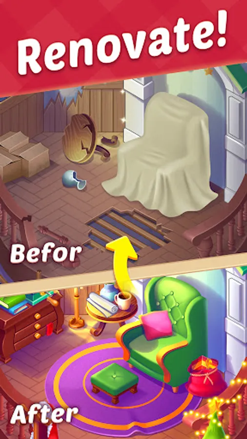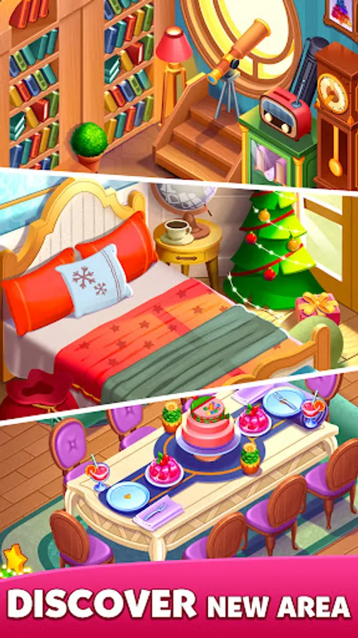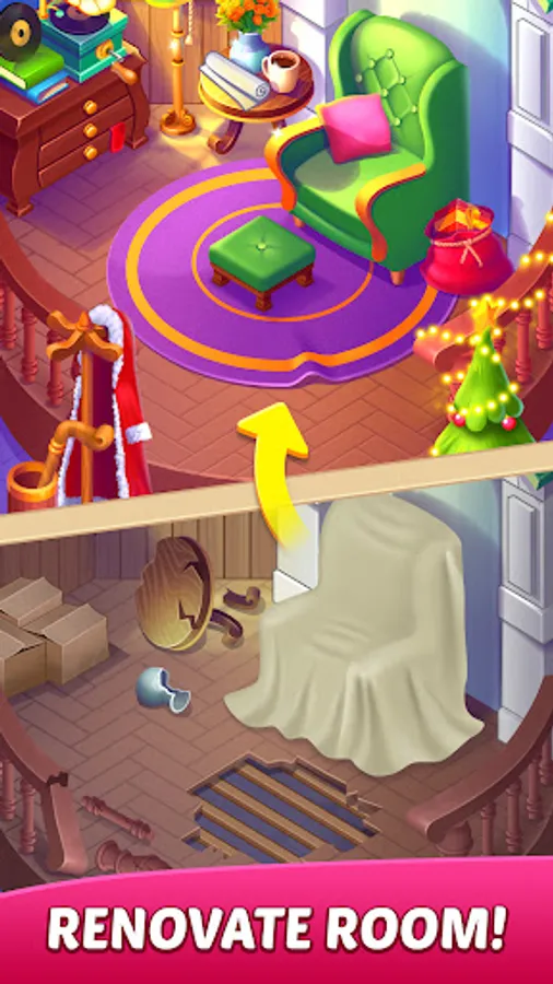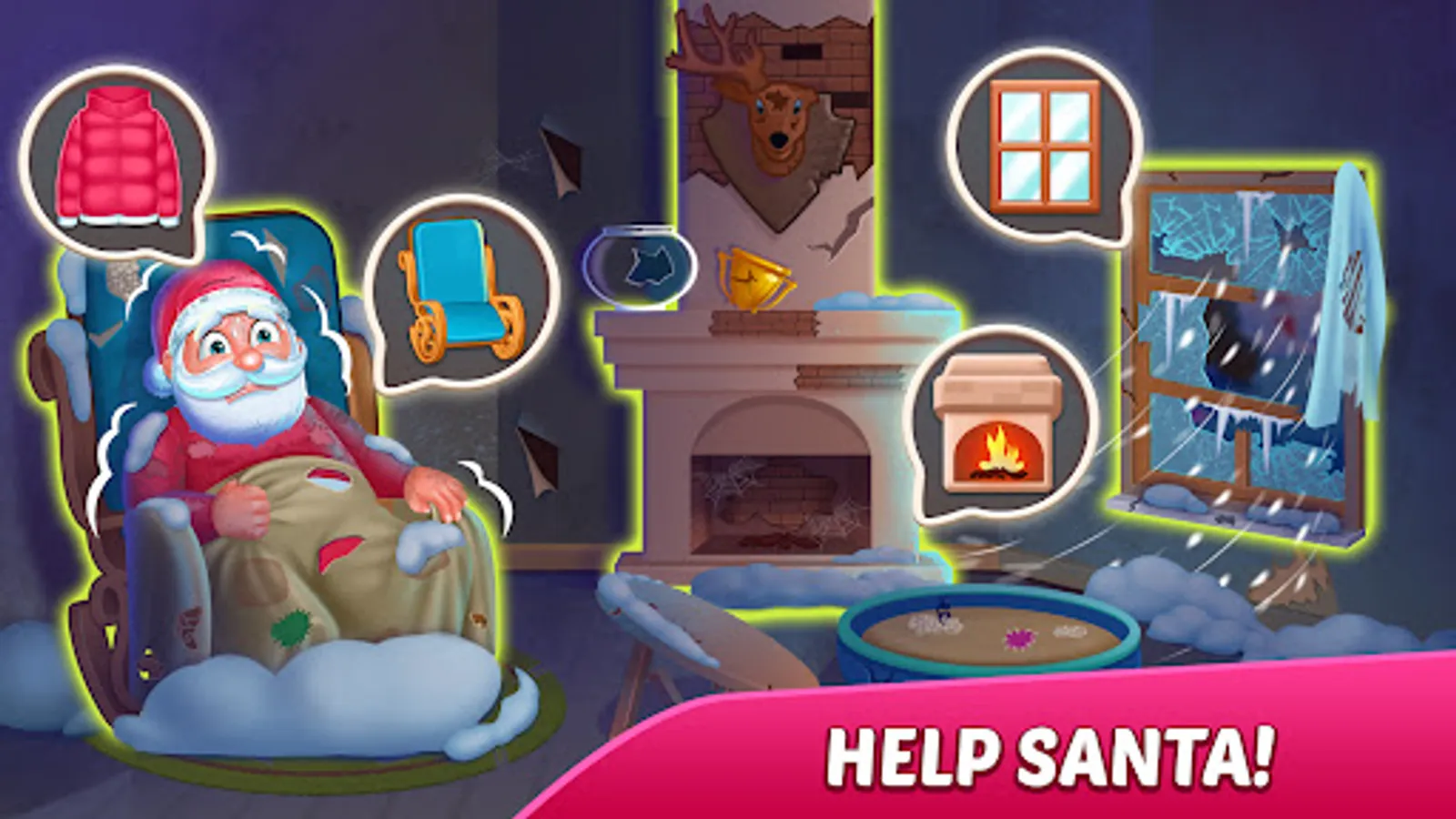 ●Decorate the areas, including the Santa’s room, kitchen, garden, garage, and many other amazing rooms with challenging levels!