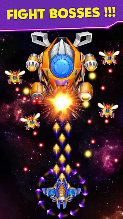 🚀Epic and huge bosses: Show off your skills. Enjoy arcade galaxy shooter game space combat - powered up