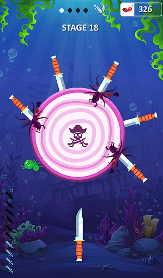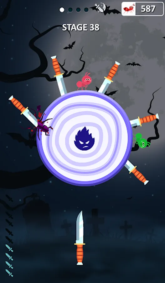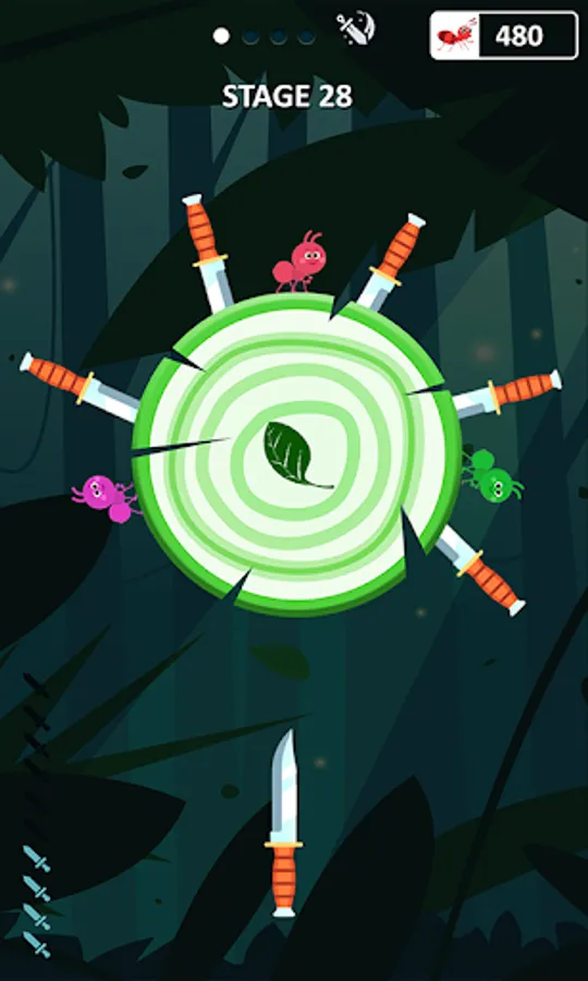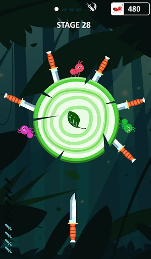 You will have a knife appearing on screen. Shoot it down towards the log and hit the ant. Be the ant smashing and go on a knife ant hit spree for as many chances as you get. After multiple knife hit attempts, the log will break and the level will be cleared.