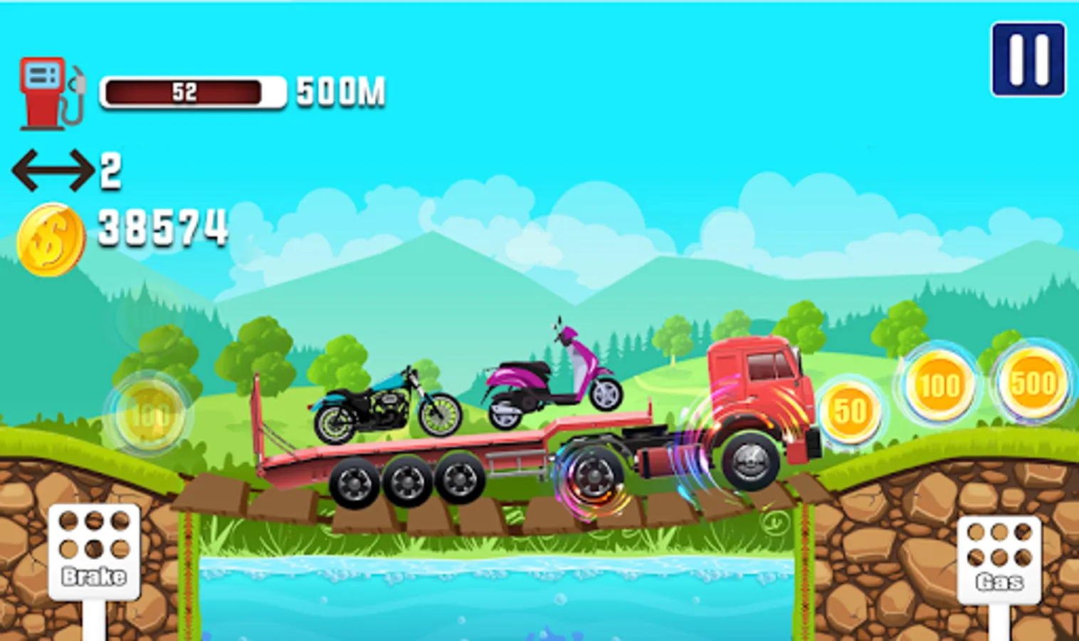 Apart from collecting fuels, you can also collect coins on your way to transport heavy bikes to your destination. Collecting more coins implies a higher score.