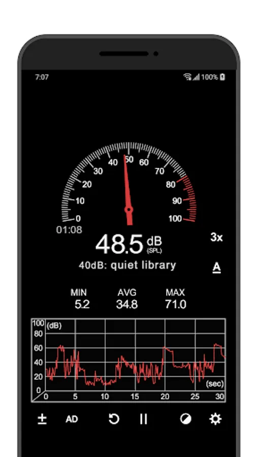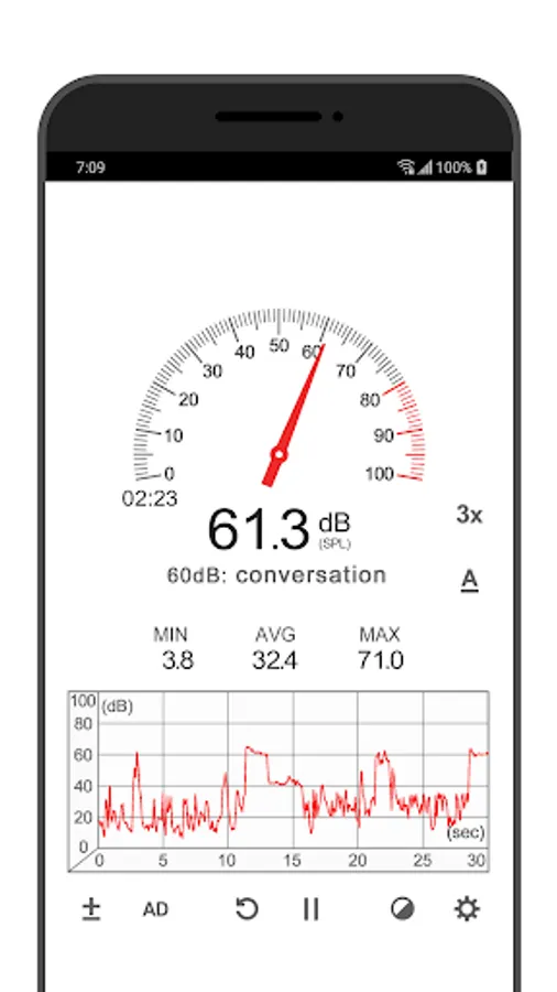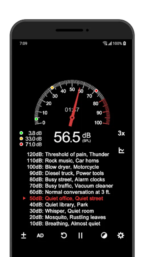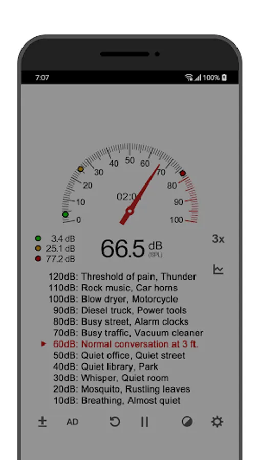 Sound level meter(or SPL) app is shows a decibel values by measure the environmental noise, displays measured dB values in various forms. You can experience tidy graphic design with high frame by this smart sound meter app.