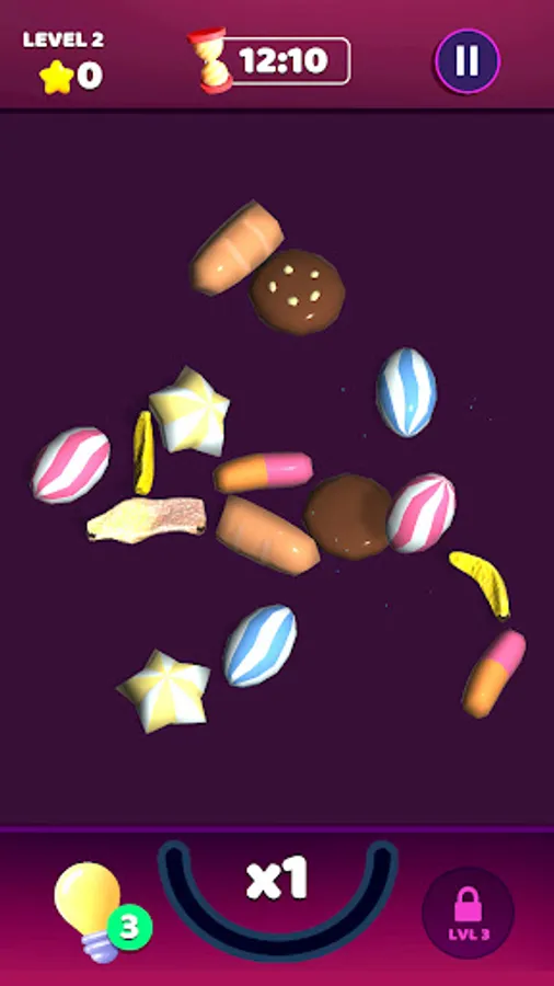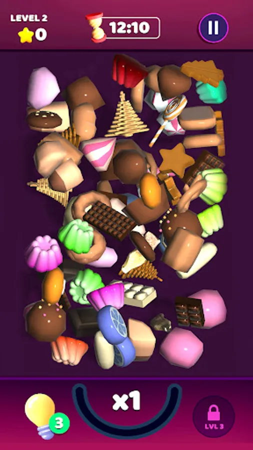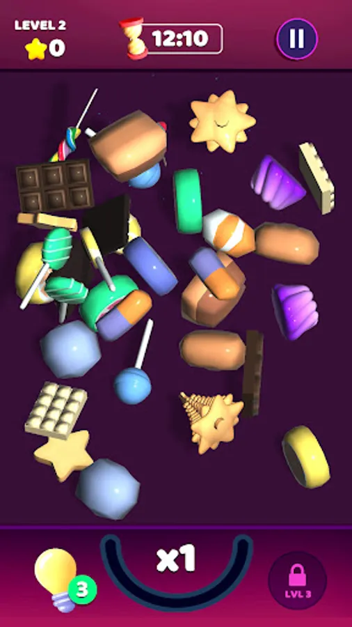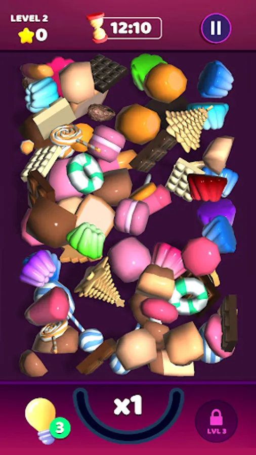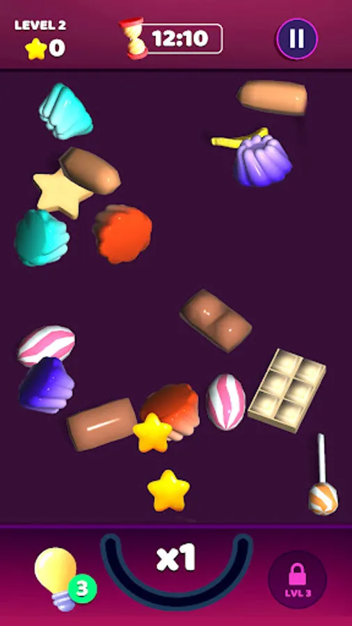 In Merge Puzzle Match you need to find and merge 2 similar 3D objects. You win the level by merging all candy and clearing the board.