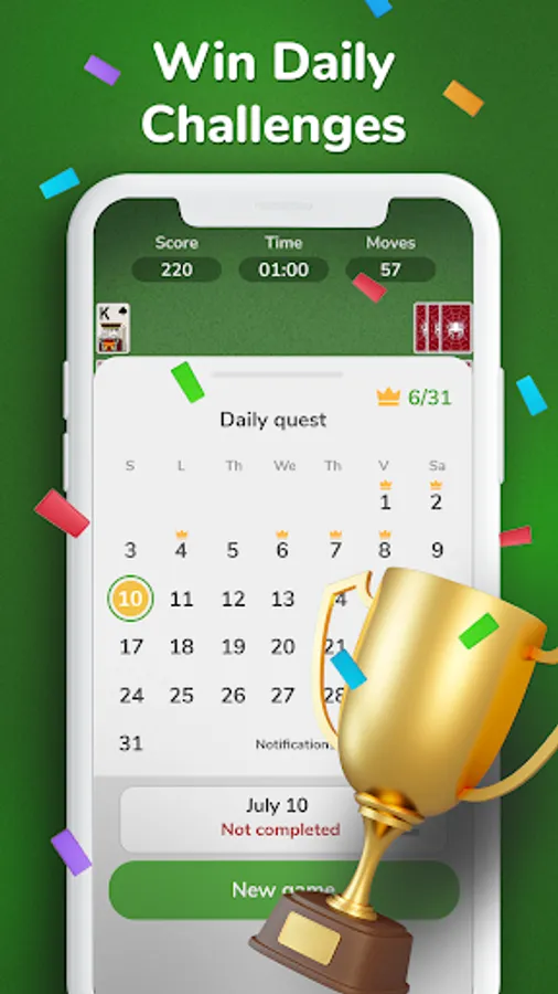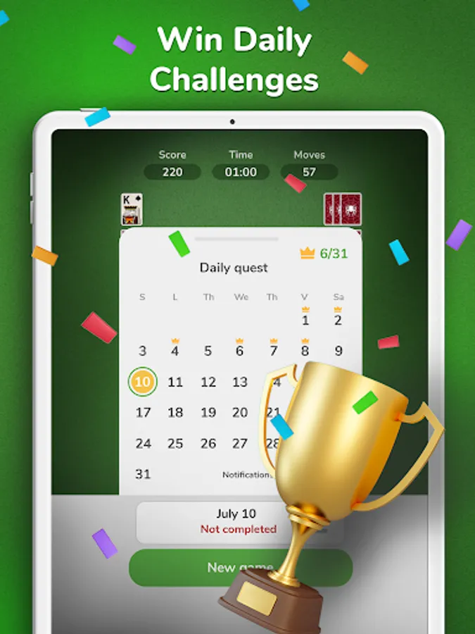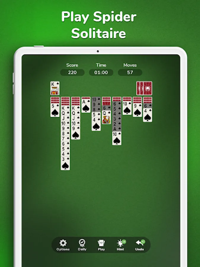 This version of Spider Solitaire is the most interesting, artistic, and user-friendly you've ever played. It offers daily challenges and goals that you can complete to earn trophies and keep your brain sharp. The more puzzles you solve, the more trophies you earn.