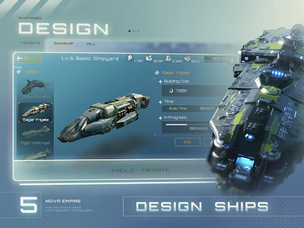 Build up a Space Empire and establish control of the Galaxy and the Universe! Nova Empire is a multiplayer space game in which the aim is to build your empire and conquer the galaxy in epic space battles against your rivals with other allies worldwide! To achieve domination of the galaxy, you will immerse yourself in action-packed space battles, define your space strategy, forge alliances among other players, and use a space base & spaceship builder to develop your space station and dominate the universe. Find out why this is one of the most thrilling and exciting sci fi spaceship games!