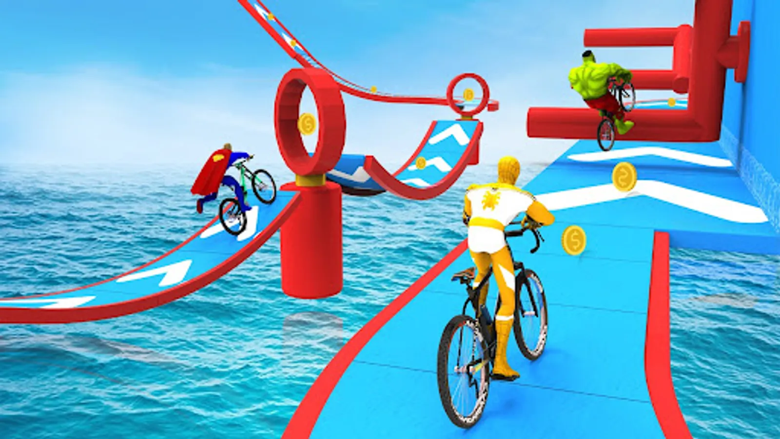 Welcome to BMX Cycle Race Superhero Stunt! Cycle Racing Game is best game for good time to activate memories of bicycle stunt your boys and girls in this cycle stunt game of Superhero Stunts Racing and Mountain bike racing game 2022. In this Offroad BMX Bicycle Game, your Superhero will perform Crazy Stunts in Mega Ramp tracks & become a BMX biker in this New Offroad BMX Cycle Game. In all Superhero Bike Games, and simulation games 2022 where you have a long and shot handle of BMX riding and racing cycle in offroad games of Superhero Bicycle Games and Bike Games 2022. BMX Cycle is best offroad cycle racing and there are Superheroes Added like Spider Superhero, Bat Hero, Muscle Hero & you have to perform Stunts with them in this Bmx Cycle Games.