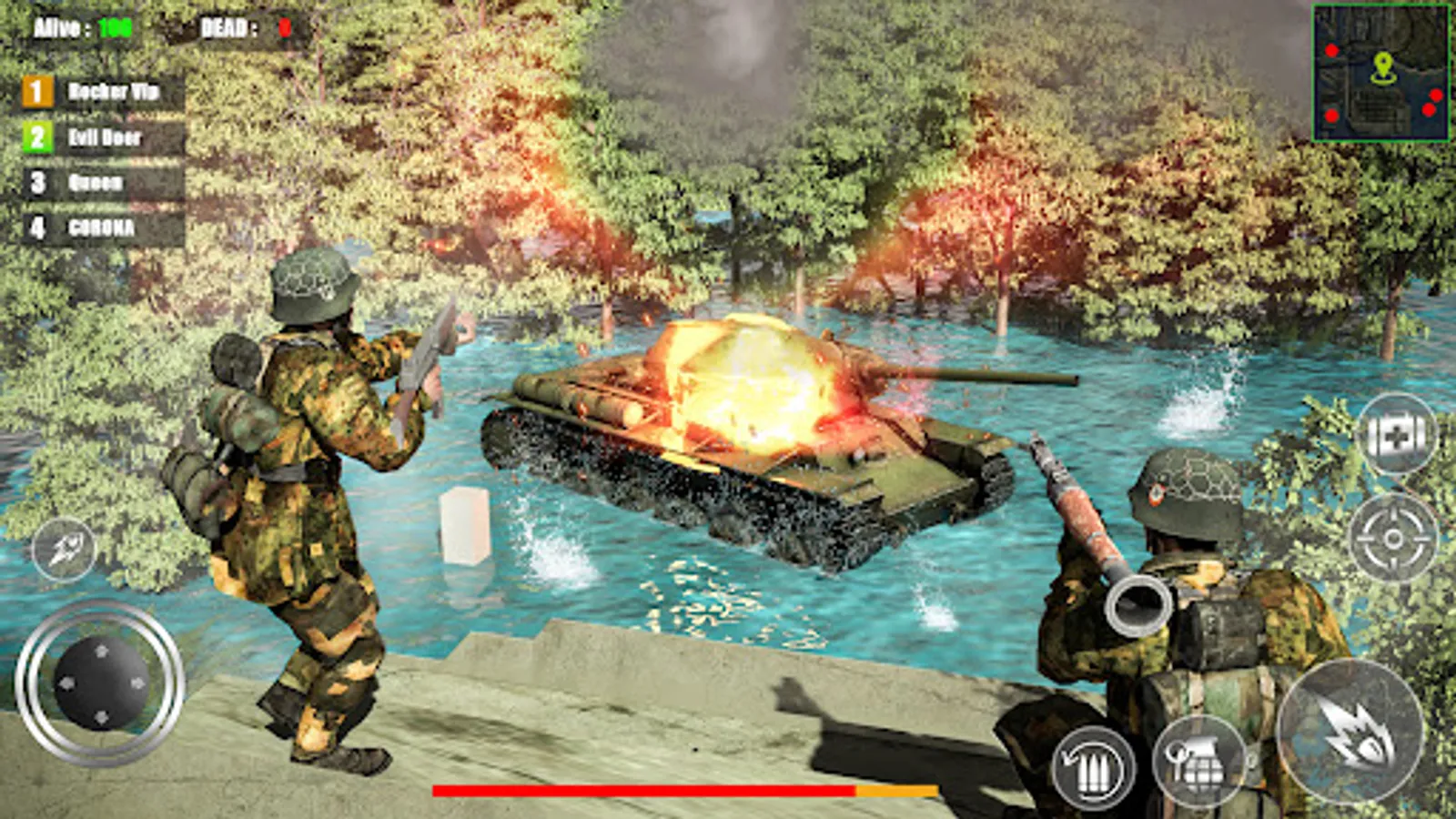 Welcome to FPS Fire survival game where you search for weapons, loot your enemies to be the last man standing in each modern strike mission. Be the ultimate survival shooter in this fire game through the cross fire team squad as world war 2 Frontline commando. You have teamed squad to conduct FPS battles in this war game on the fire battleground in the hopeless land on WWII settings. You will encounter with deadly sniper skilled enemies and opponent to be the lone survivor at the end of each mission in this free battleground fire game. Latest military weapons like pistols, machine guns like AK47, MP5, M4 and grenades are added in this gun shooting game. At the end of each world war commando mission you are rewarded with new guns & snipers for target sniper shooting. Don't take it easy FPS shooters this is a real challenging battle of the fire squad for you. You are excalminated at each mission accomplished with good reward and praised by the commanding officer of your bulletin.