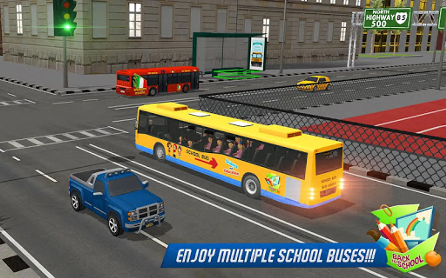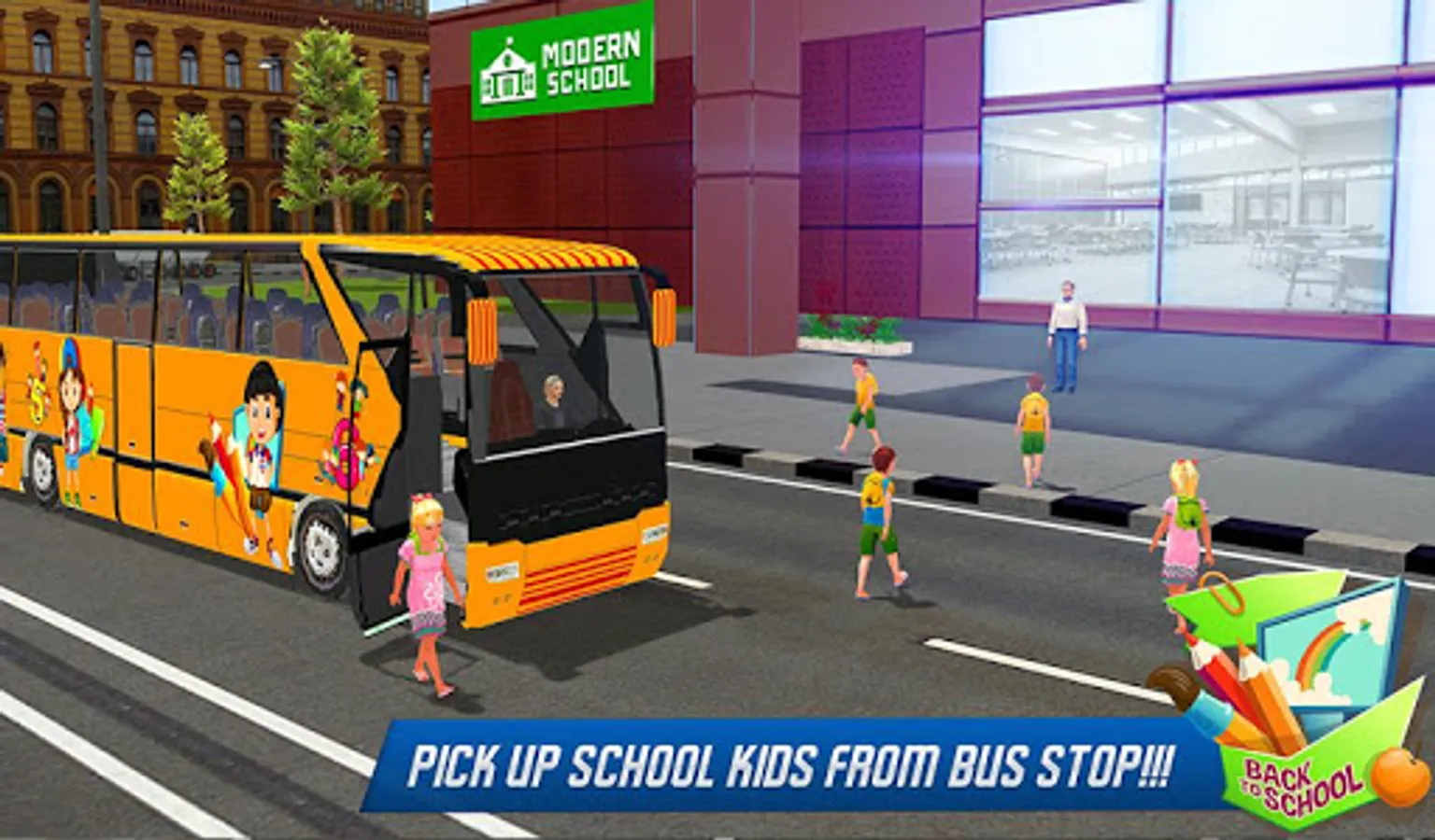Speed up your modern coach bus when there are no turns but slow down deliberately when you are taking turns. Hold tight and keep patience and avoid obstacles and traffic. You have to monitor the all traffic rules, this good rehearsal will make you a good citizen in real life too. Your mission is to safely drop off at school! Your duty is picking up the school from different Bus Stop across the city and drop them safely at city school before time ups.