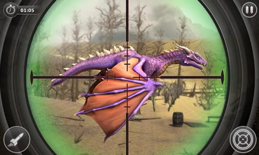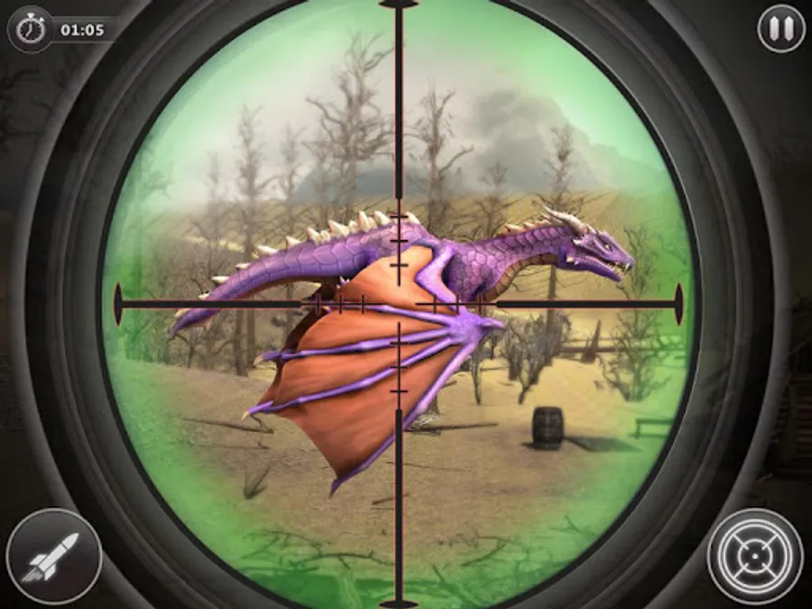 You have played many dragon simulator games but it's time to shoot down and hunt the dragon. Select your favorite launcher and shoot down the dragon within a given time to complete the mission. Shoot down the dragons fast because they have the ability to fire and can do a lot of damage to you. You will lose the challenging levels if you don't shoot the dragons before finishing time. This new shooting game 2021 is full of shooting thrill, and it is a complete hunting adventure with a sniper legacy for dragon hunting. Enjoy and play dragon games to become the king of dragons.