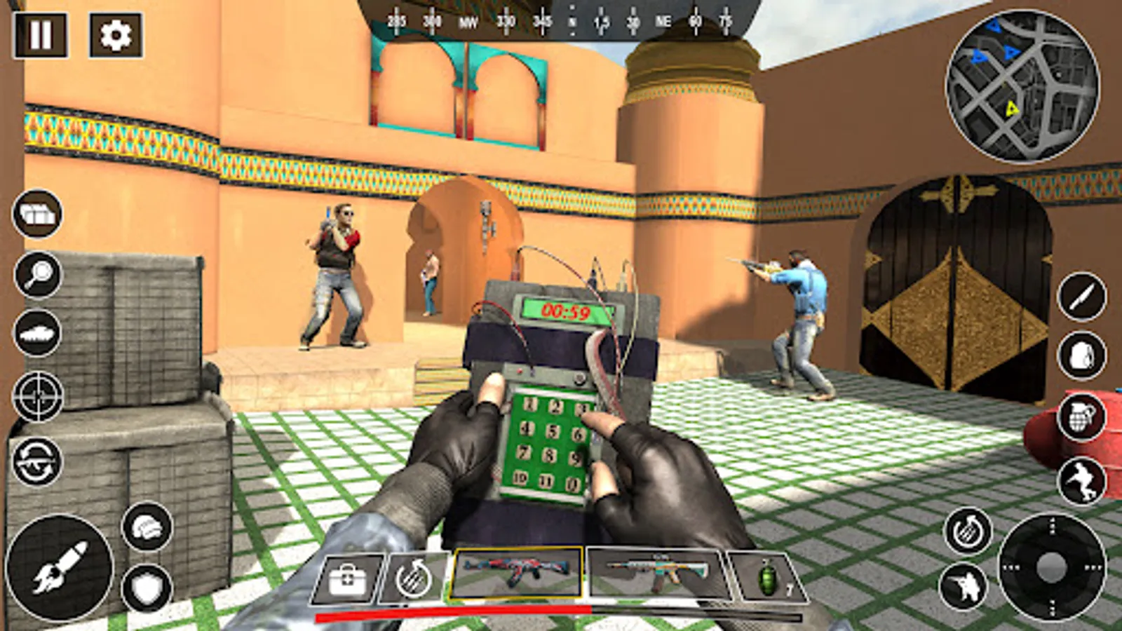In this anti-terrorist game, there are two teams with opposing objectives. The first team aims to plant and safeguard a bomb until it explodes, while the second team's mission is to prevent the bomb from being armed or to deactivate it if it's already planted. In this explosive game, Take up arms and fight with determination to reclaim your base and emerge victorious on the war bomb battlefield games.