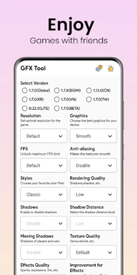 Game Launcher & Optimizer helps you configure the game graphics by the best optimized
