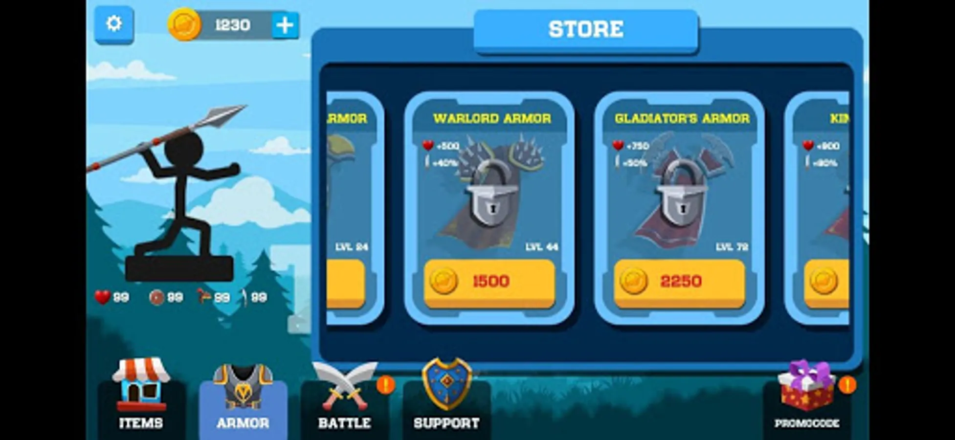 Limitsiz mərhələlər və 2 əla oyun rejimi Stickman - Epik Döyüş oyunumuzda.