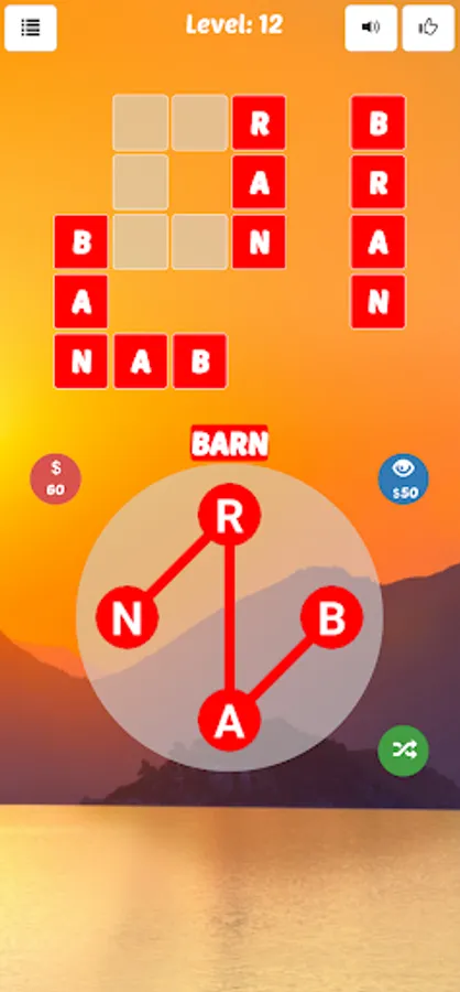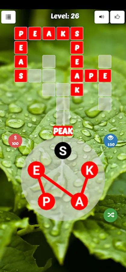 Swipe the letters to find and guess the hidden words in a crossword-style grid.