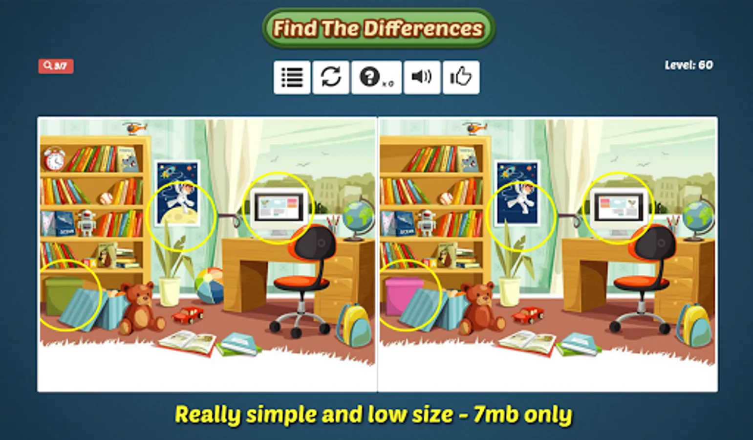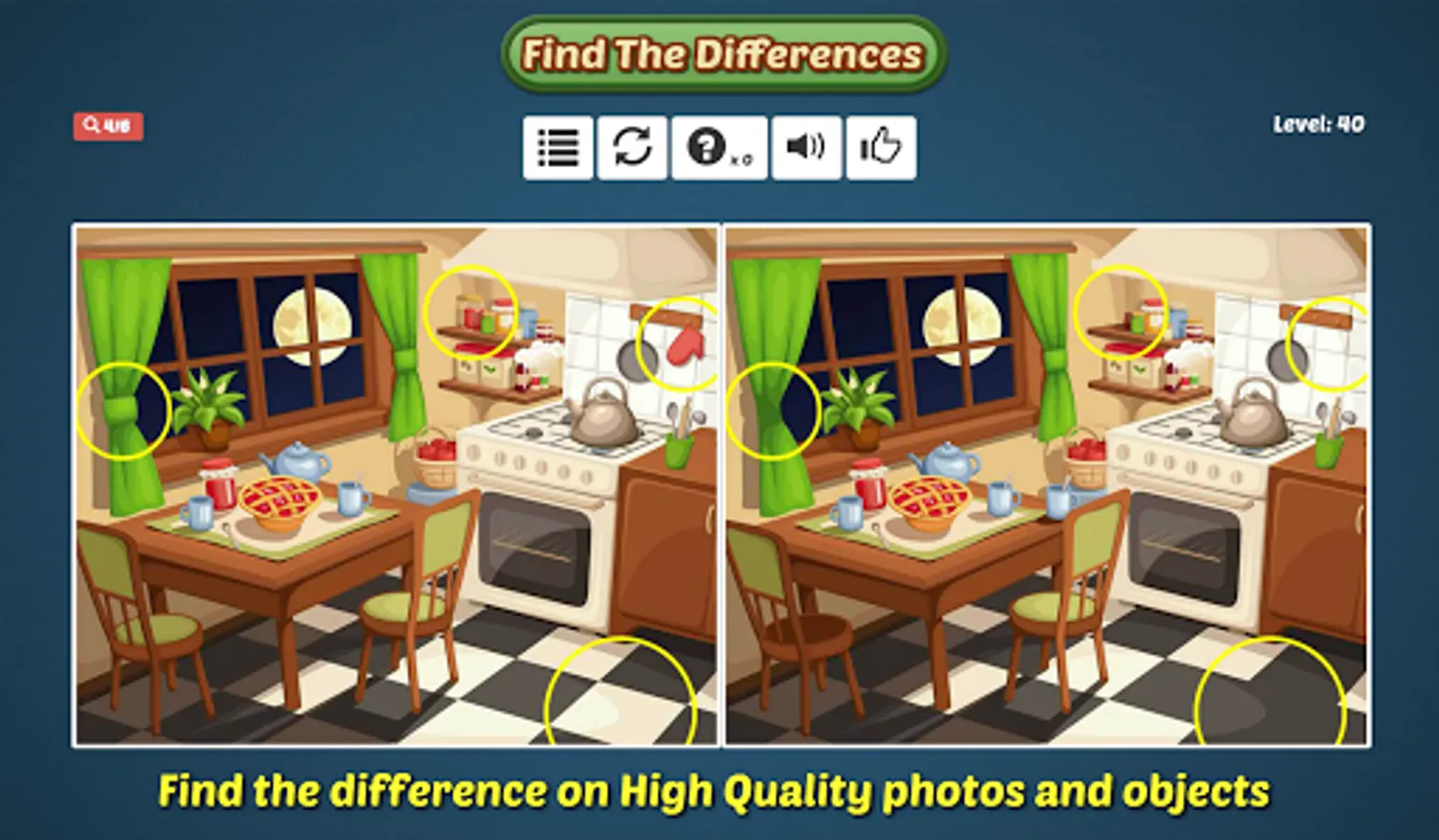 Find the differences challenges your brain to find differences that you ordinarily overlook. Best part of find the difference is that it sharpens your mind.