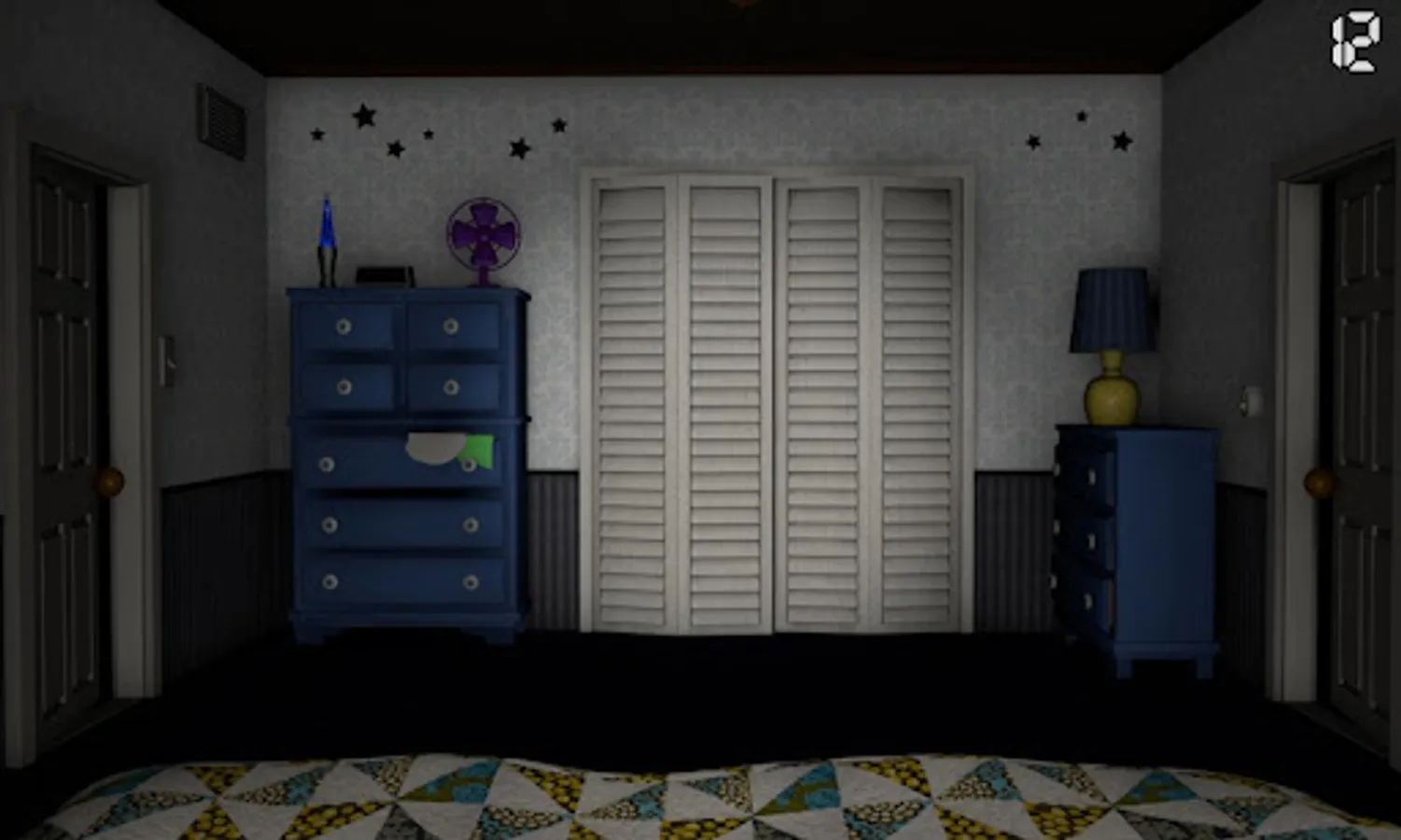 You must defend against the nightmares wandering in the dark. Playing as a child, you must guard yourself until 6 o'clock in the morning, watching the doors and driving away unwanted creatures that may run into the closet or into your room