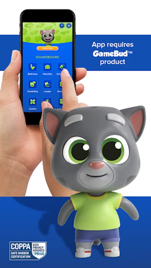 GamePlay - Open up Talking Tom Hero Dash (available now) or a Talking Tom Gold Run (available in December) and click 'Connect GameBud' under settings. Once you begin playing, your Gamebud™ will respond in real-time about your play, giving hints and talking smack with genuine excitement.