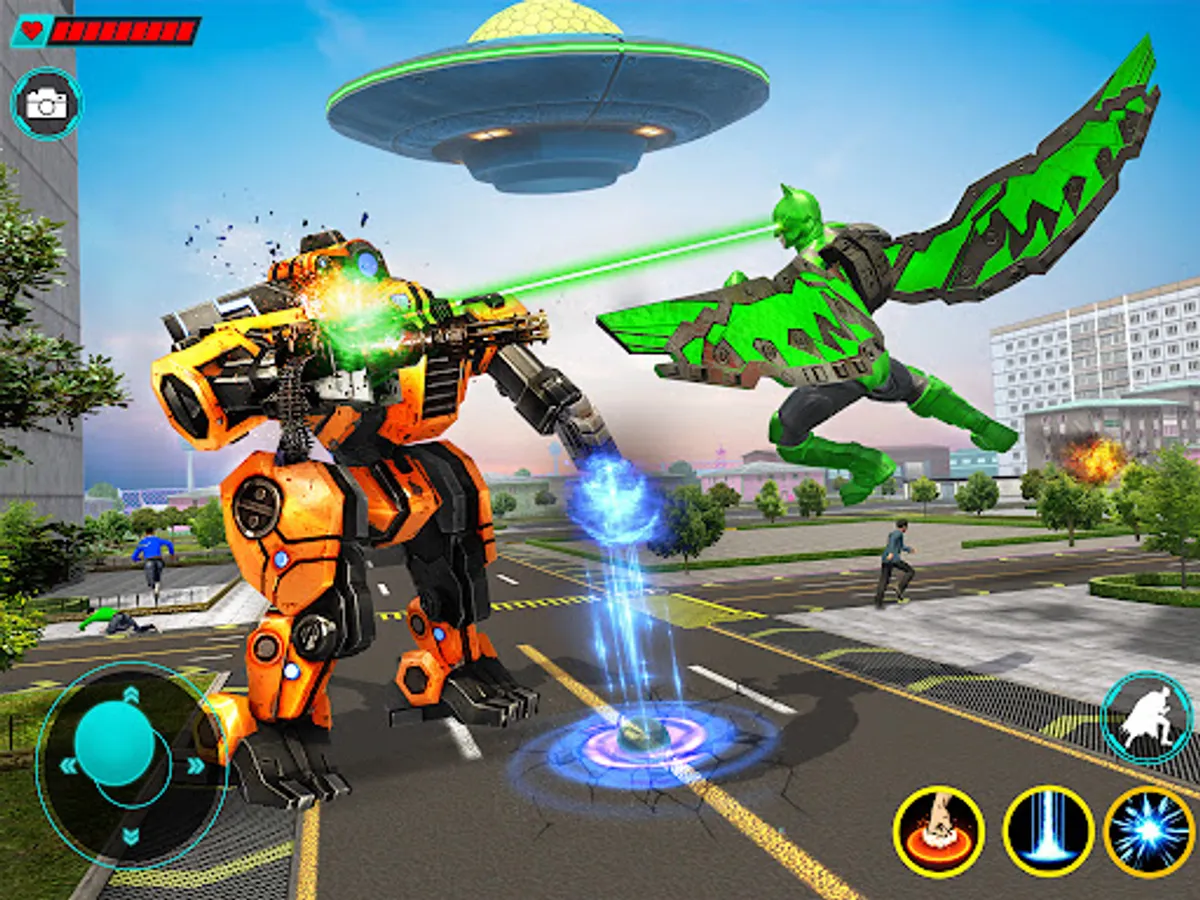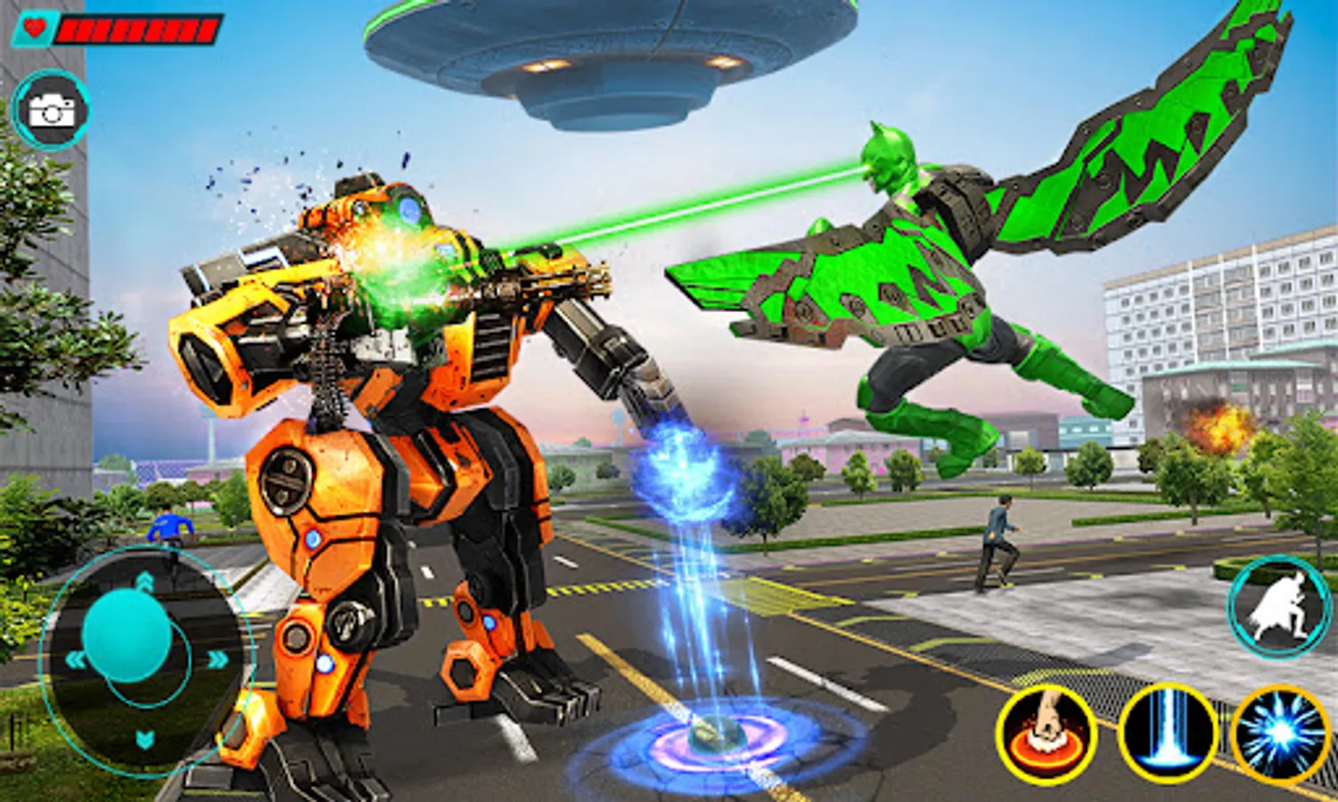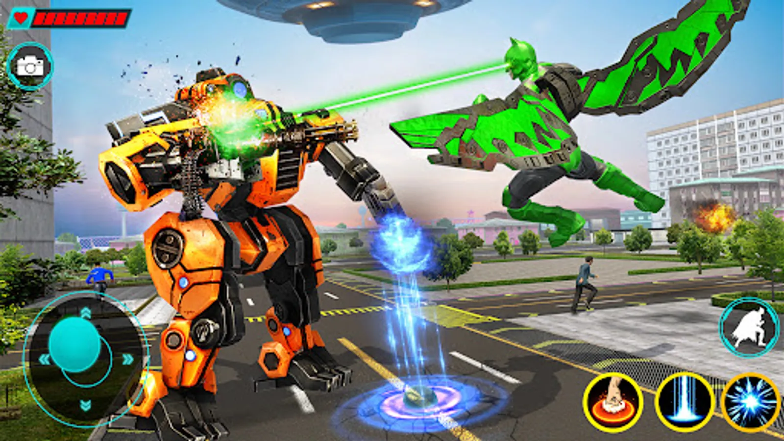 The battle of the future robots has begun. Get ready to take the modern city on a journey of success and experience amazing gameplay by replacing flying bat robots and motorbikes with new weapons and robot modifications. Your job is to save citizens and robots from the anti-robot championship and save the future of robots.