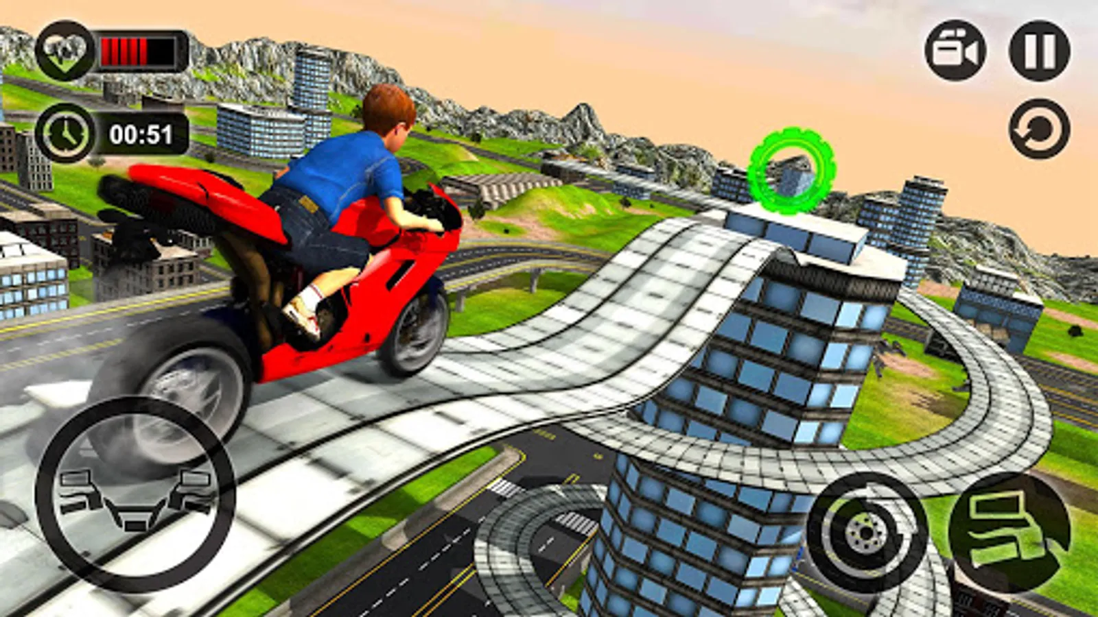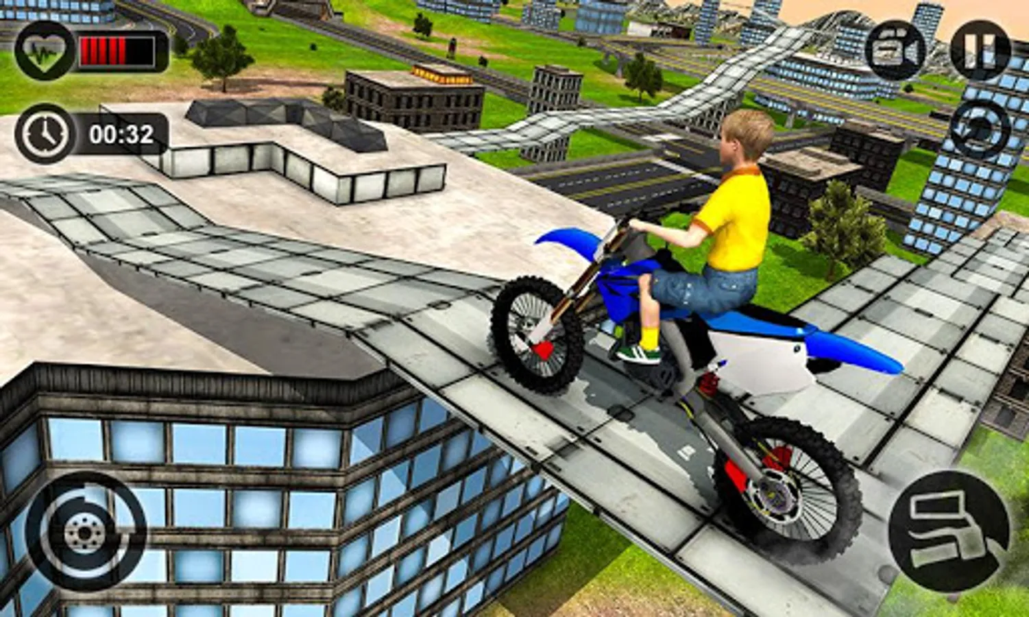Motorbike driving is a thrilling fun adventure that like motorcycle games and are bike lovers. Roof top Motor Bike Stunt Rider is extremely design with realistic and dynamic motorcycle physics. While driving crazy moto on mid-air ramps change gears with precision to control speed for perfect balance of bike. On sharp turnings avoid fast racing to prevent road accidents with motorcycle crashing.