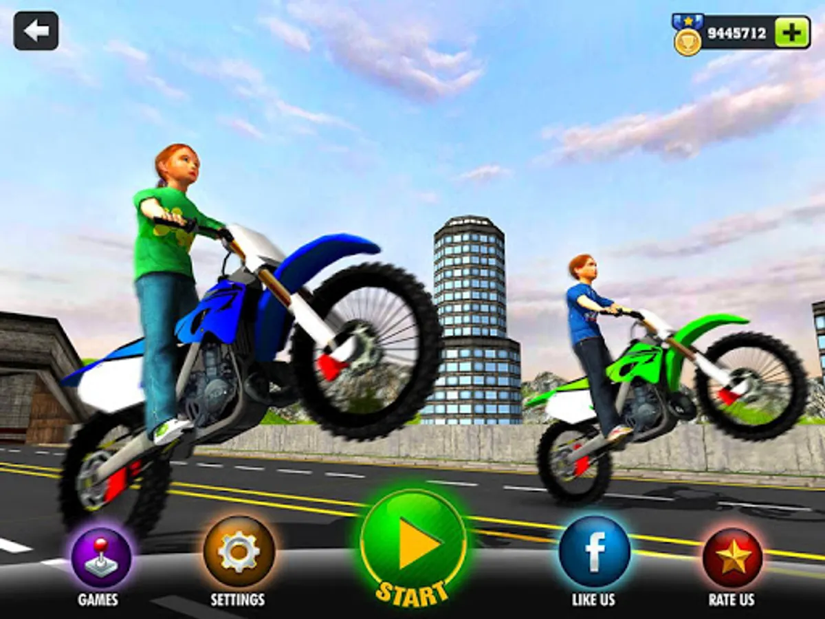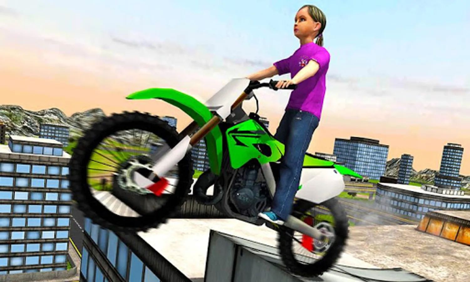 Hey it’s time for motorcycle ride on city rooftop. Take control of motorbike on rooftops of modern city. Both boys and girls can perform city stunts by riding motor bike on roof building of city. While stunt riding take motorbike safety by wearing helmet. Avoid the crazy obstacles by doing rooftop jumping on goosebumps. Ride different as a super kid to be a legend of motor bike racing by driving on impossible tracks
