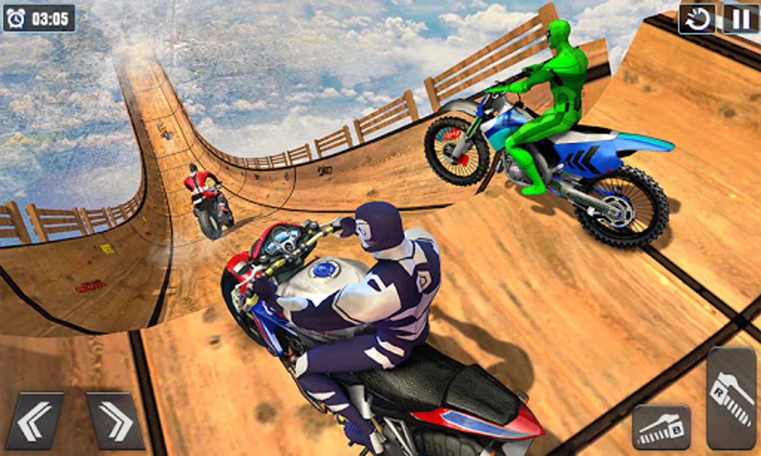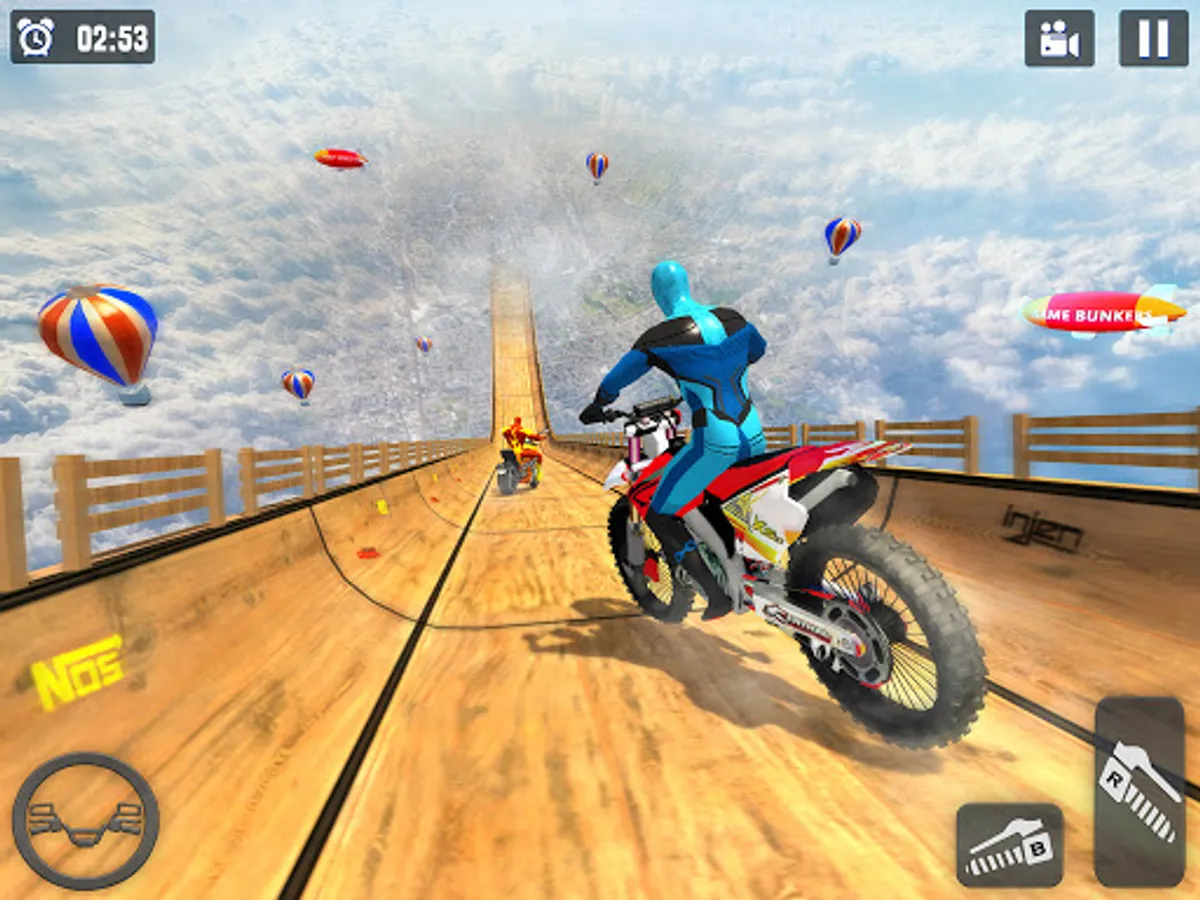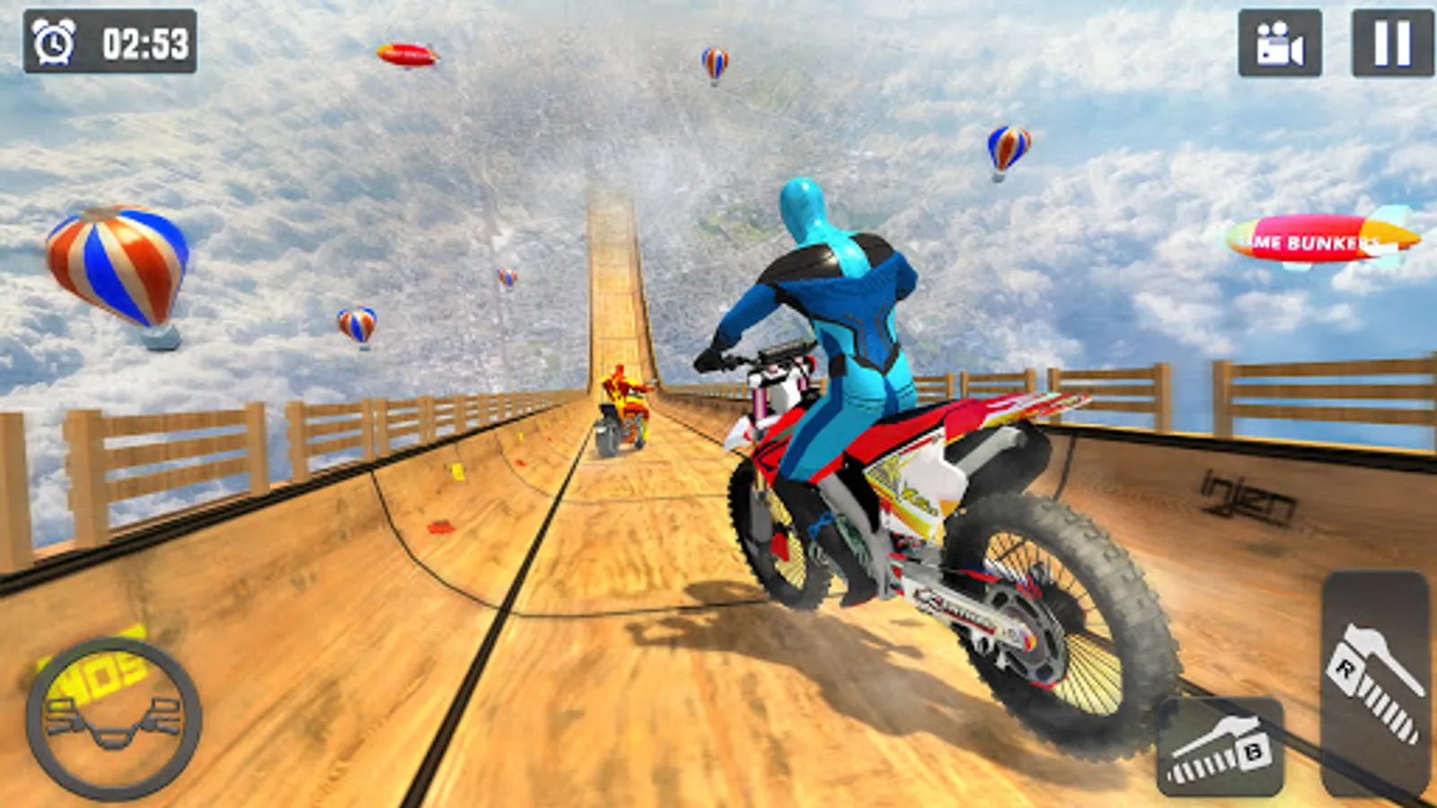This bike stunt 2021 game, is also a multiplayer racing game, where you can jump over hurdles and win the race from other bikers on vertical ramps to become the moto hero. Prepare yourself for the bike challenge! Ride the bike and complete all the tricky bike stunt levels in time. Avoid the obstacles which come on your way and perform crazy bike stunts on vertical ramps. Show your talent by performing amazing gt stunts.