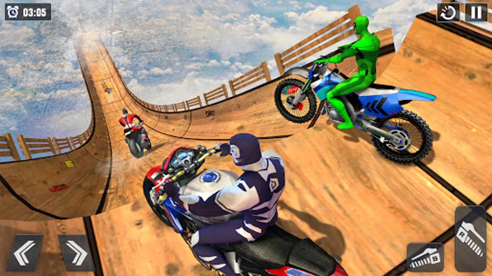 Do you like to play bike stunt racing games on mega ramp tracks? If yes then play this tricky motorbike stunts game with the addition of vertical ramps, superhero stunt race, and amazing bike stunts. Get ready for the tricky stunts of the superbikes game and perform stunt jumps in the free motorbike challenge. Choose your favorite superhero bike from the garage and start the journey of bike racing stunt game.