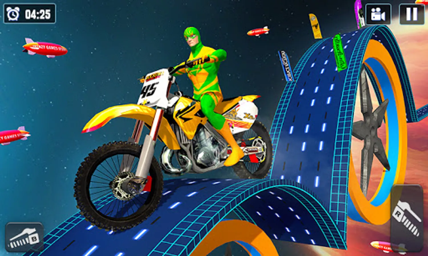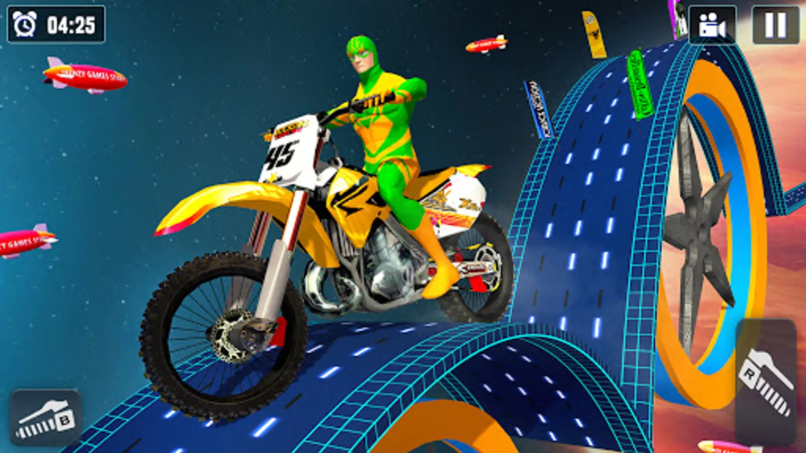 You have played superhero motorcycle races and motorcycle challenge games, but it's time to prove your ramp bike riding skills on impossible mega ramp tracks with superhero bike riders. In this bike stunt race, there are different challenging modes and an endless mode where you will drive bikes to perform racing stunts with a variety of bike transformations. The stunt driving games will give you the best amazing experience of stunts bike. Download the superhero bike game and enjoy extreme bike stunts on impossible tracks full of hurdles.