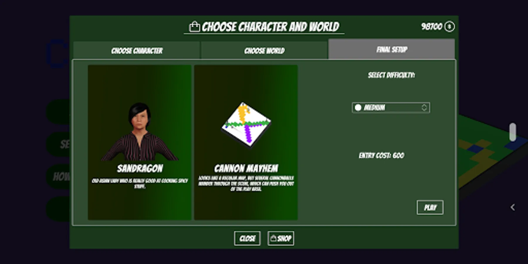 You can choose between 5 characters and 5 maps, each one of them with different perks and quirks.