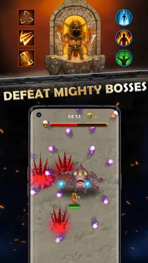 Each time you upgrade, get one skill from the three candidate skills. Try different skill sets and use the best skill combination strategy to survive.