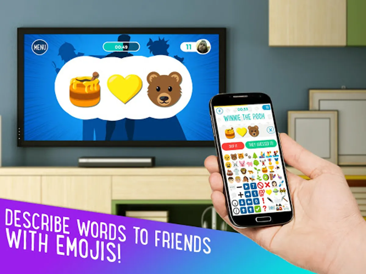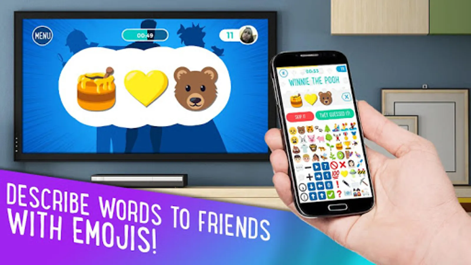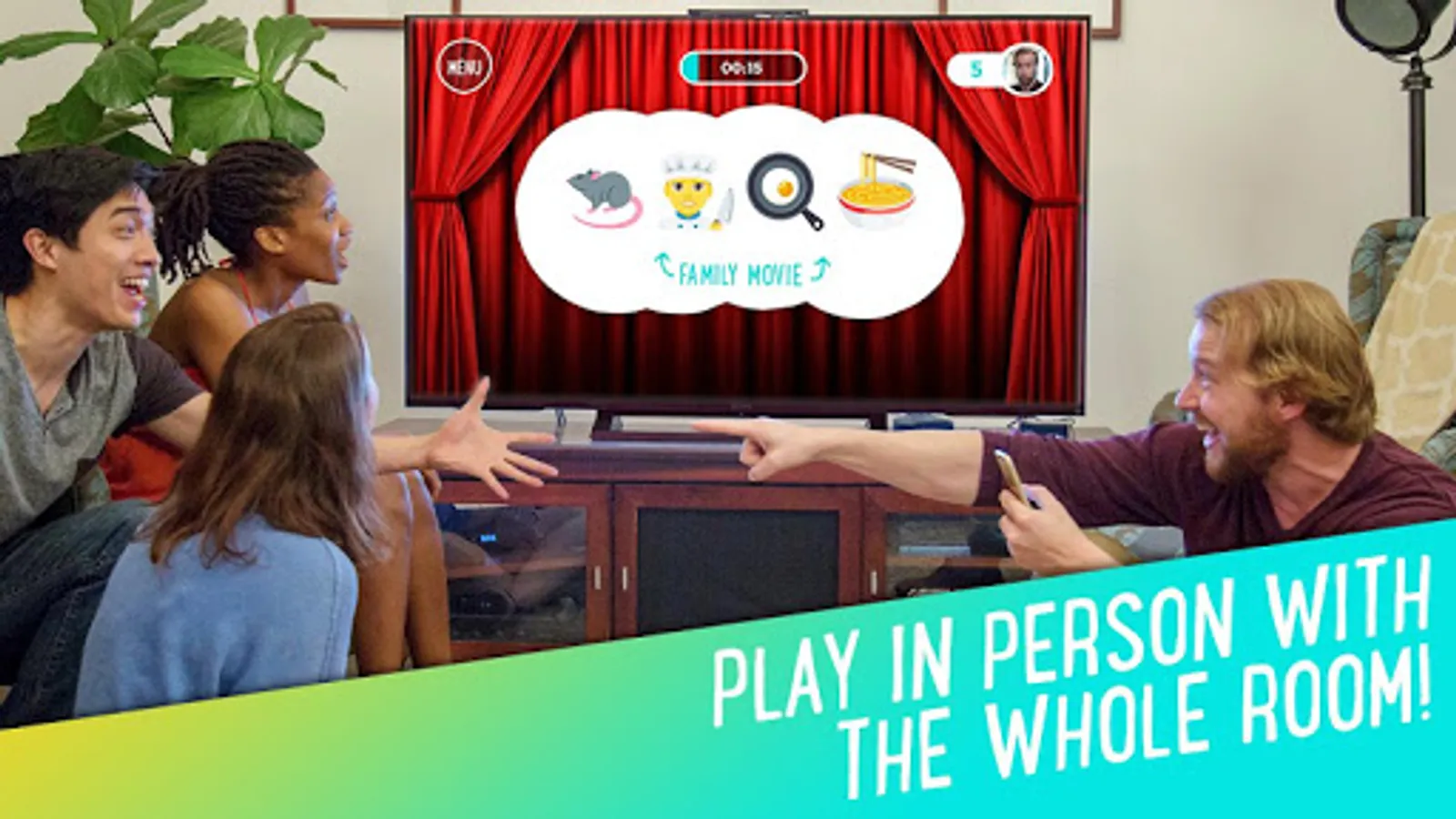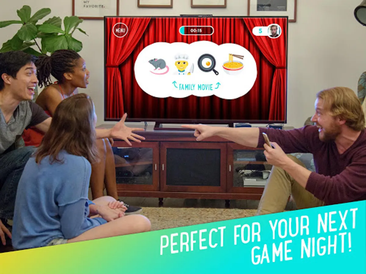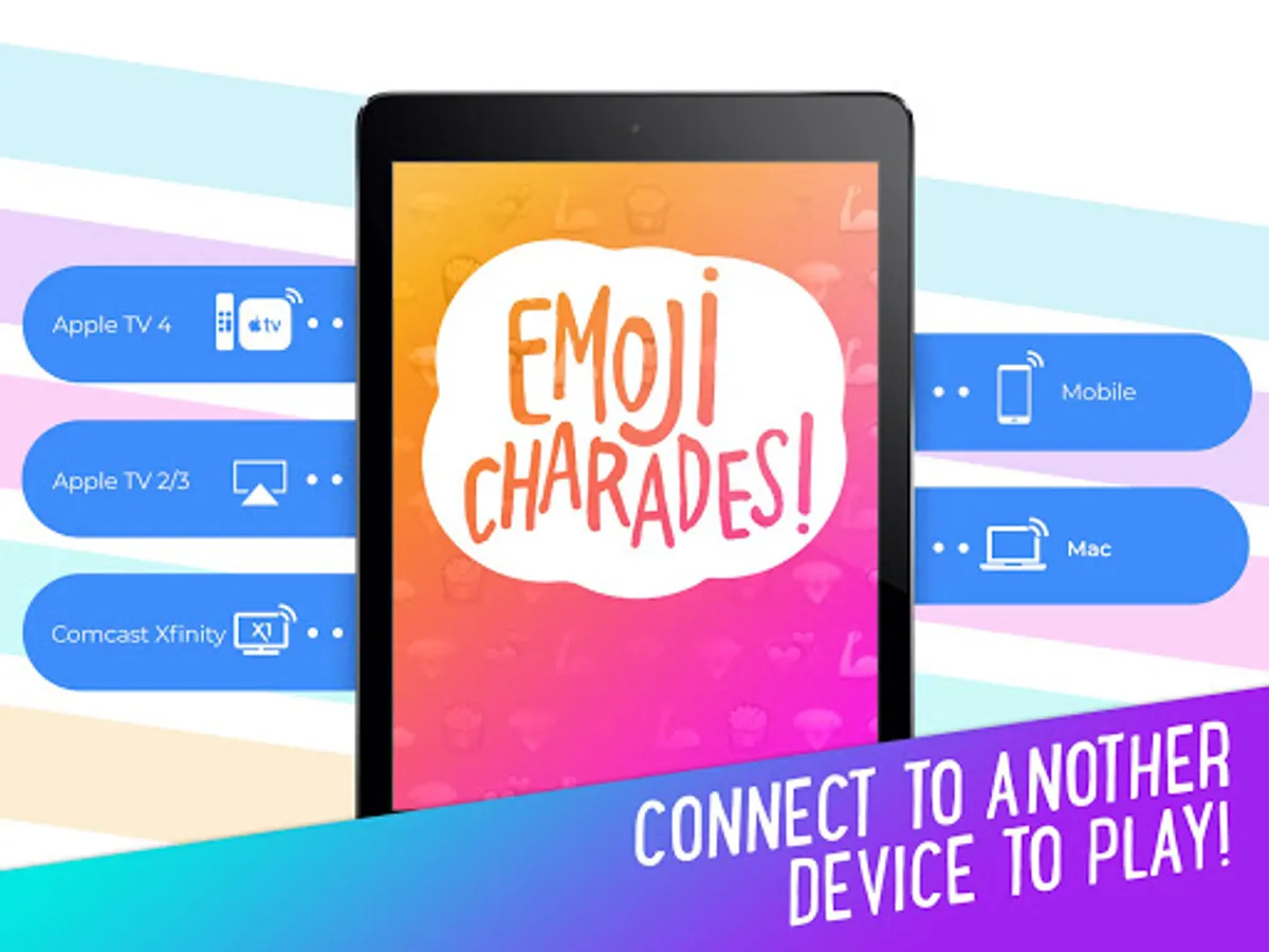 Emoji Charades is a zany party game that is great for friends, families. Turn your living room into a trivia madhouse, as you describe trivia to each other using nothing but emoji. You'll need two devices to be able to play. Connect one phone and use it to type emoji, while everyone else in the room shouts guesses at them. Score as many points as you can until the timer runs out, then pass the phone along! This game is fun for all ages and offers 27 different trivia categories. From Animals to Fictional Places, to Horror Movies to Junk Food, we're sure you’ll find a favorite that you will completely dominate at. You can play with 2 or more people, but we recommend at least 4 for the best experience.