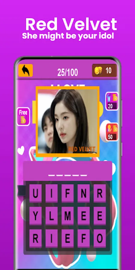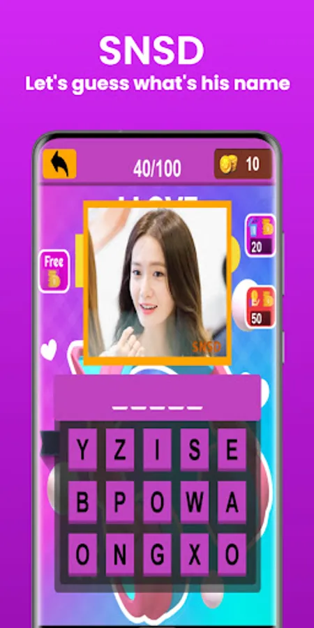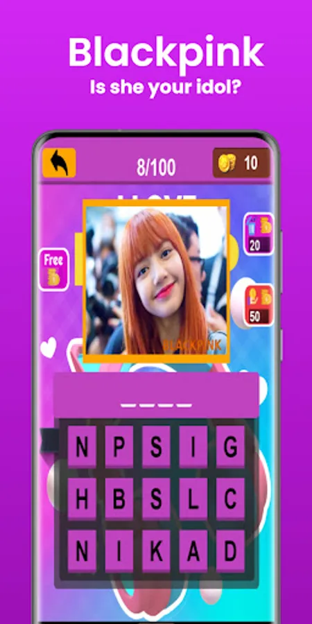 Guess kpop idol is a quiz game that guesses the names of world famous kpop idol members from korea such as BTS, Blackpink, SNSD, EXO, Twice, Red Velvet, Super Junior, Mamamoo, Oh My Girl, and many more names of kpop idol groups in this game.
