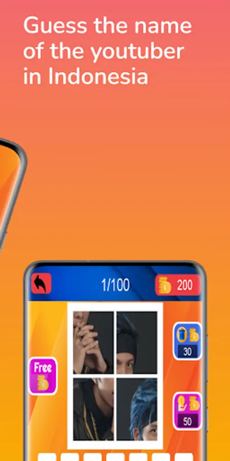 Youtuber Quiz is an application or game to guess the name of famous Indonesian YouTubers that you often watch their videos. There is Atta Halillintar, Boy William Raffi Ahmad and many other Youtuber names in this game. Each level there are 4 parts of the Youtuber's face that are randomized as a clue.