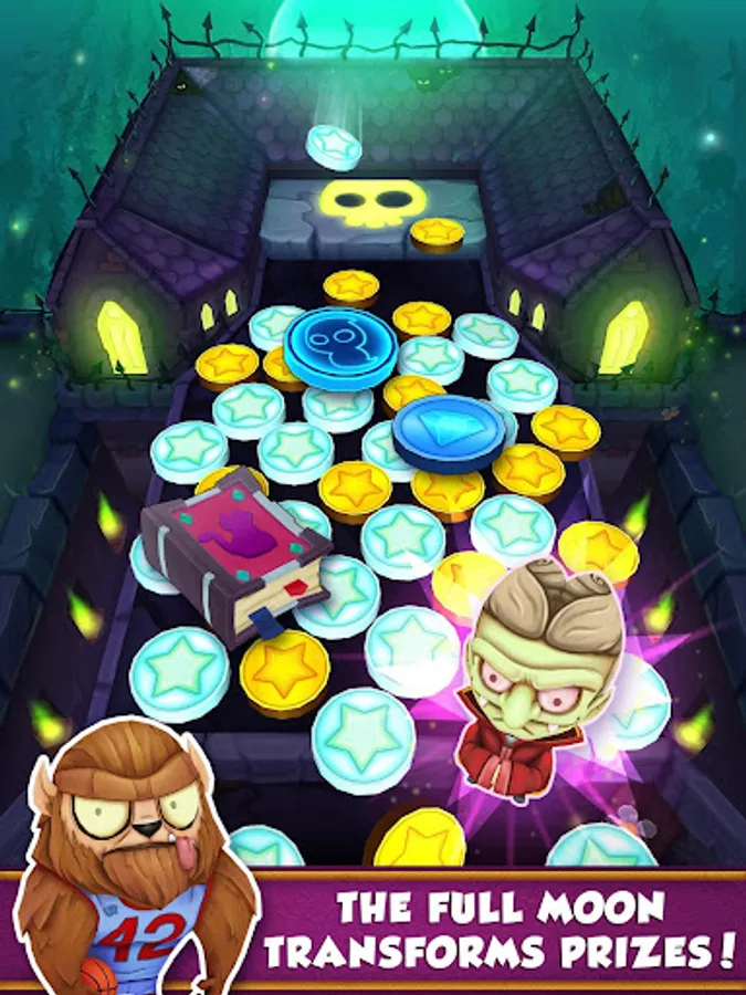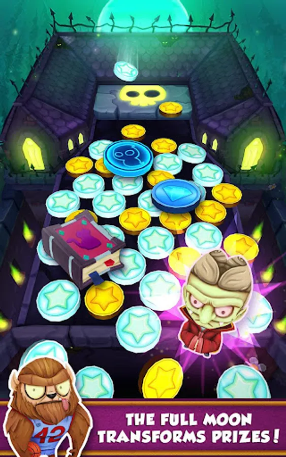 Ghosts and ghouls are having a spooky party and you’re invited! Find ghost in our new bonus game; the more ghosts you can find, the greater your reward! There is mania everywhere as monsters like zombies, werewolves, vampires, and witches are roaming the graveyards until you collect them. But beware stranger things! Rare prizes will appear when the full moon comes out in our new game mode. Use this precious time to collect the legendary monsters such as the grim reaper or wolfman! Join the underground party and play Coin Dozer: Haunted Ghosts for free!