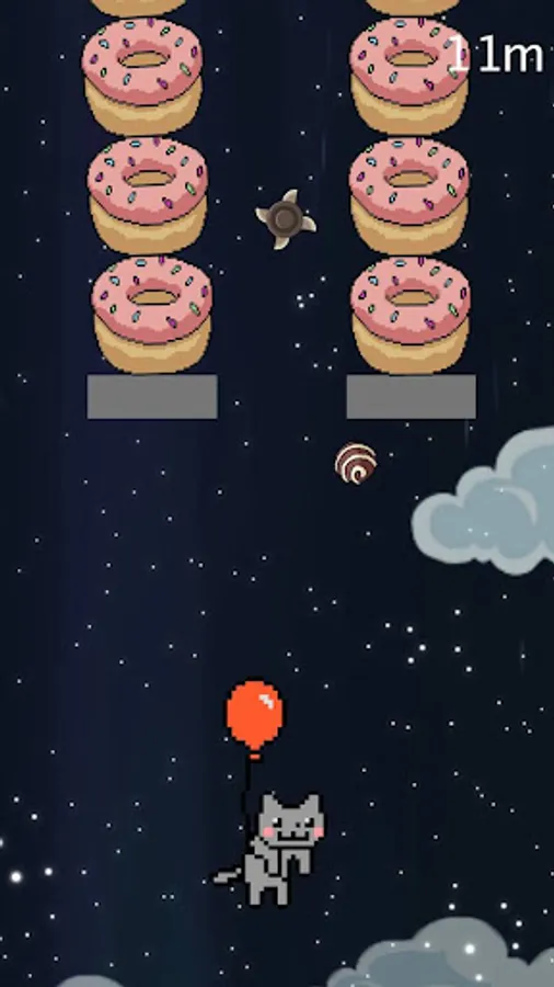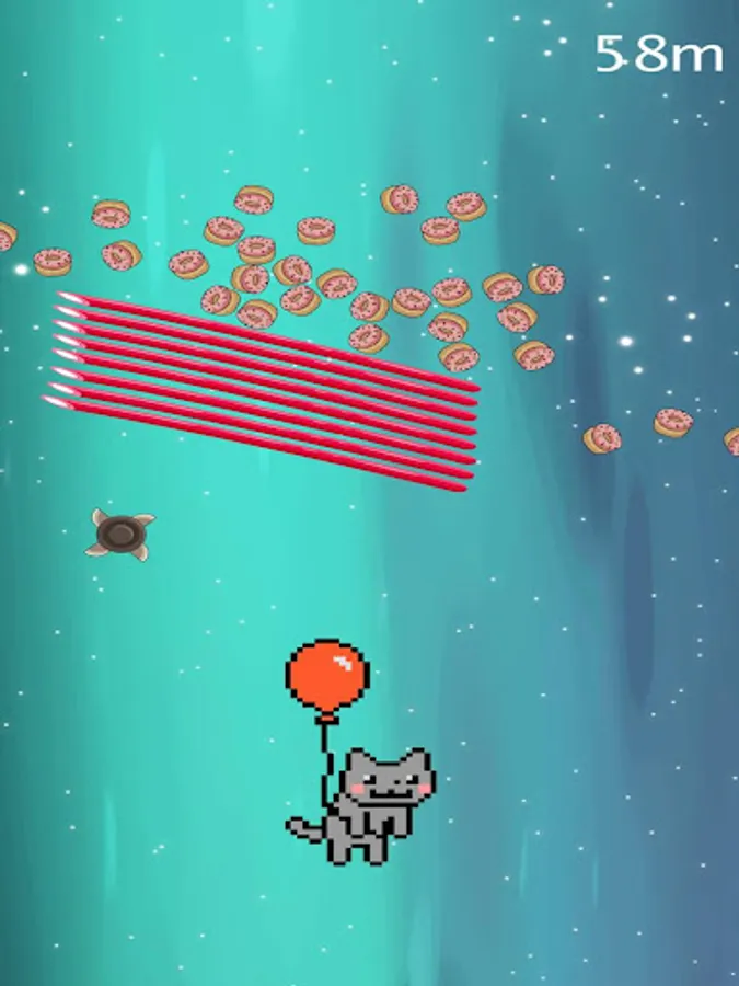 You must help your Cat flying through the Candies and avoiding all obstacles , escaping from Candies , Chocolate, and Cookies .