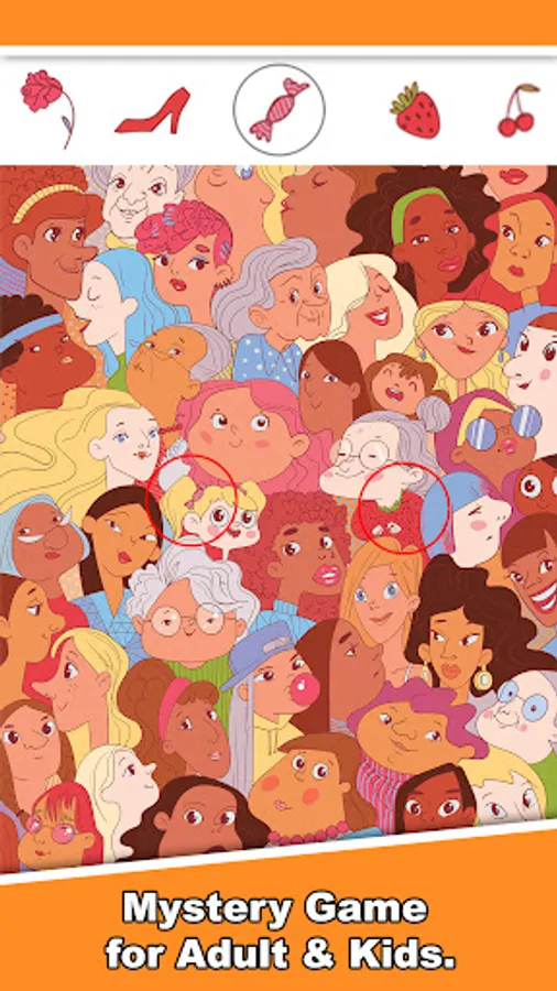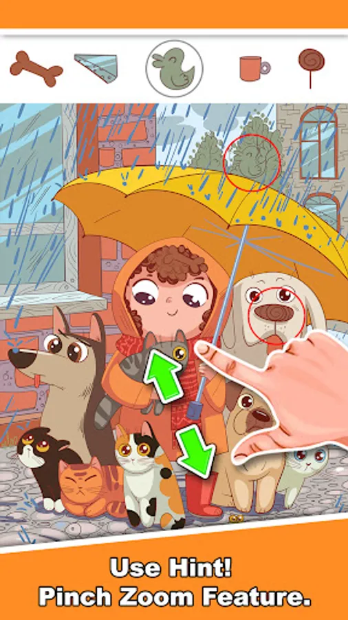 - Examine the pictures carefully and look for objects simply by tapping the screen.