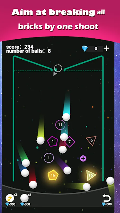 Hold down the screen and drag your finger horizontally to aim, let go to fire all the waiting pinballs, and easily break all the bricks!