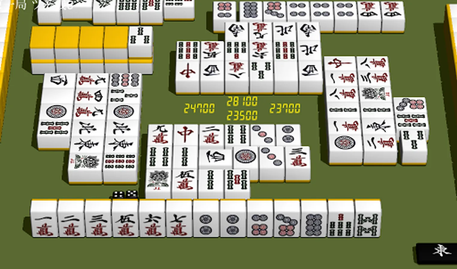 リアルの麻雀と同じように、出親は起家マークで、親はサイコロの位置で確認してください。