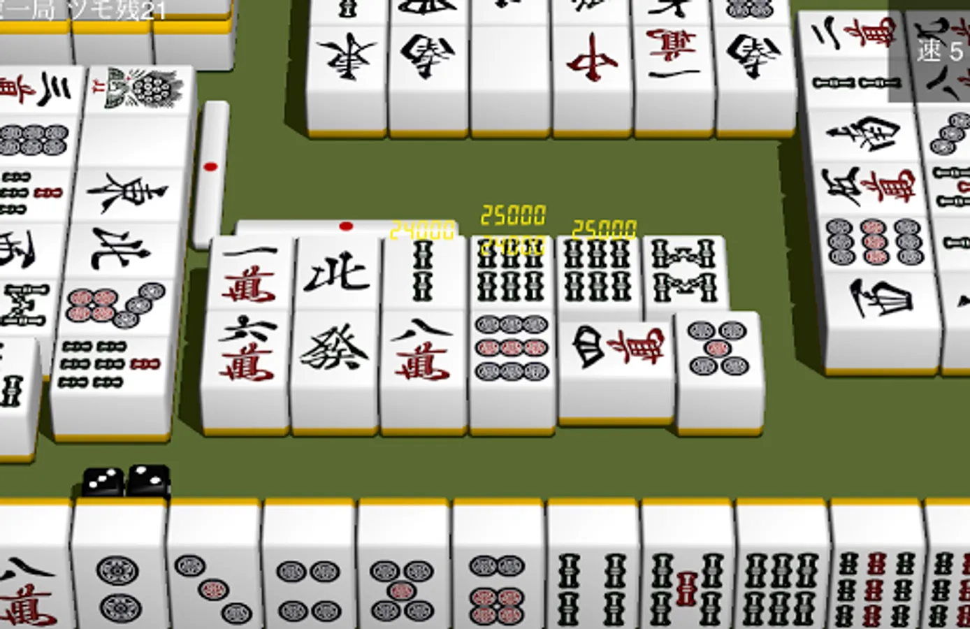 この麻雀アプリには、出親や親の位置表示がありません。