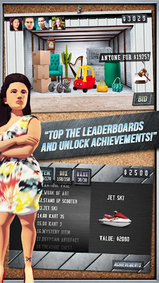 Auction Wars: Storage King features global leaderboards and eleven achievements. Trade your way to the top of the leaderboards and beat the scores set by friends and strangers alike!