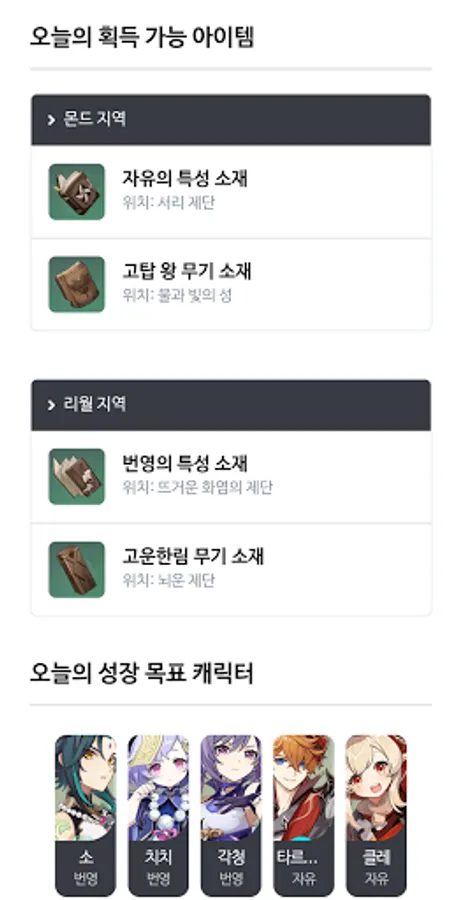 Through the Genshin Today function, you can automatically find materials available today, growable characters/weapons, and calculate materials!