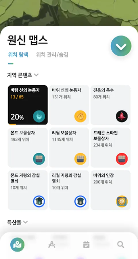 From special products to treasure chests, eyes of the gods, and monsters, everything is organized, and you can also indicate whether you have acquired it!