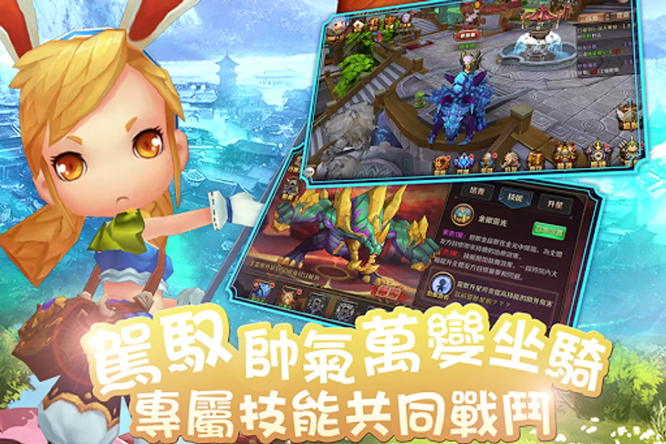 2017年幻想系真正動作角色扮演3D遊戲,開啟可愛冒險旅程。遊戲集合了多人物策略性操作戰鬥、英雄收集、英雄養成等多種玩法,更有帥氣坐騎,供你騎乘,伴你戰鬥,陪你遊歷大千世界!
