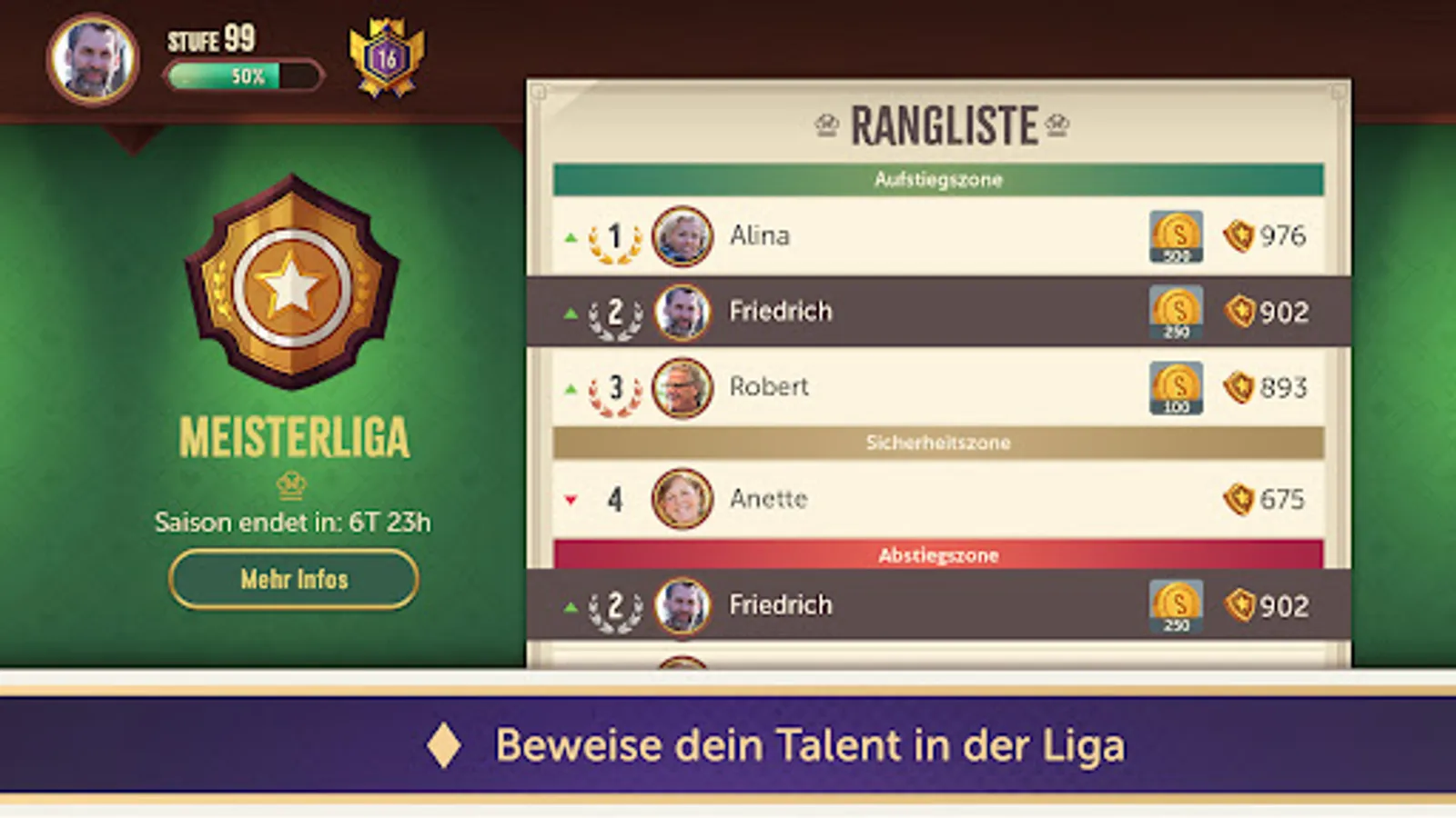 ♣ FLAUNT YOUR SKILLS IN THE LEAGUE: rise up the ranks in our leagues and become a champion