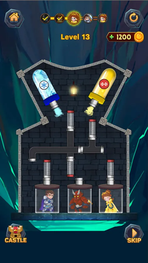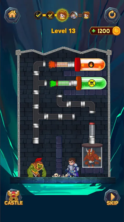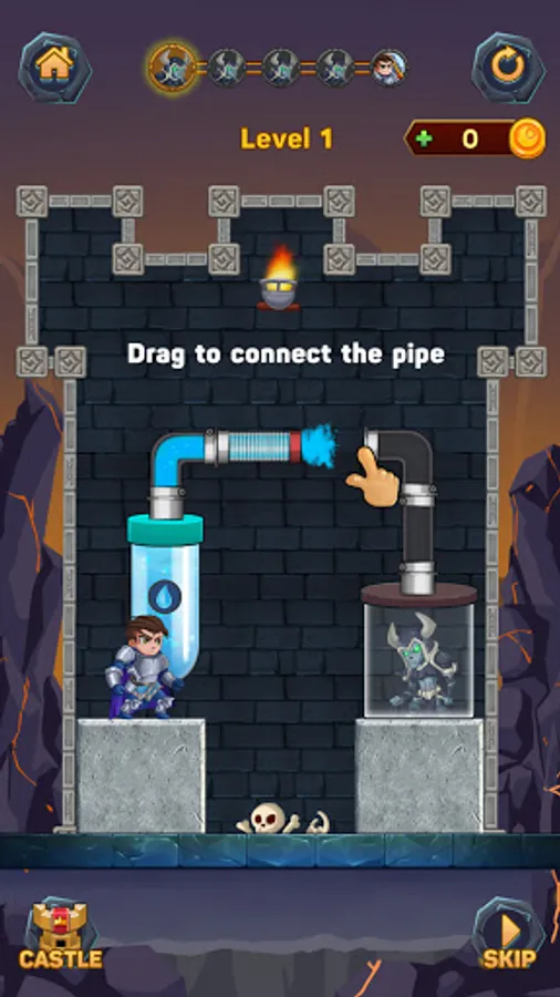 Solve puzzles and rescue the hero, collect all the treasures, kill monsters and save the princess. Connect the pipes in order to destroy your enemies by pulling lava and poisonous gas into their puzzle units.