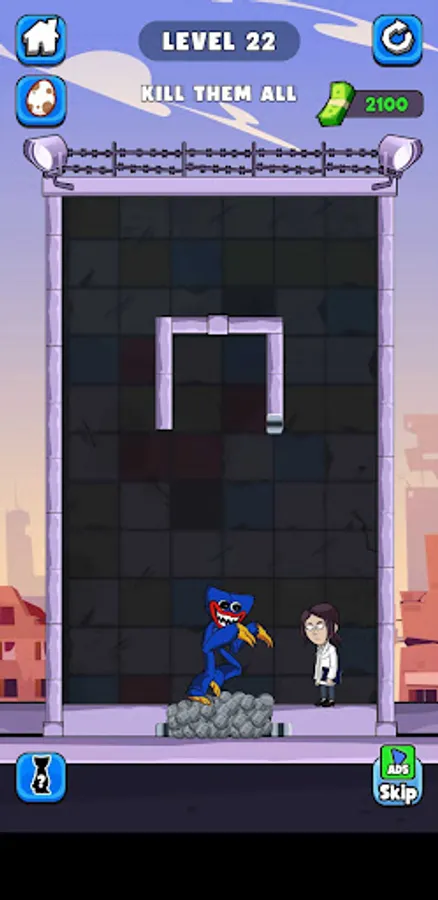 Your task is to pull the latch to solve the puzzle, then execute all the factory intruders like factory workers, aggressive monsters, policemen, intruders, .... None be survived. Whether you're a killer or a puzzler, Huggee Pin: Poppy Playtime Chapter 2 is a fun filled monster rescue challenge ready for you.