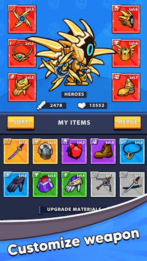 ✔️ Make up your own hero with both free and paid accessories, weapons